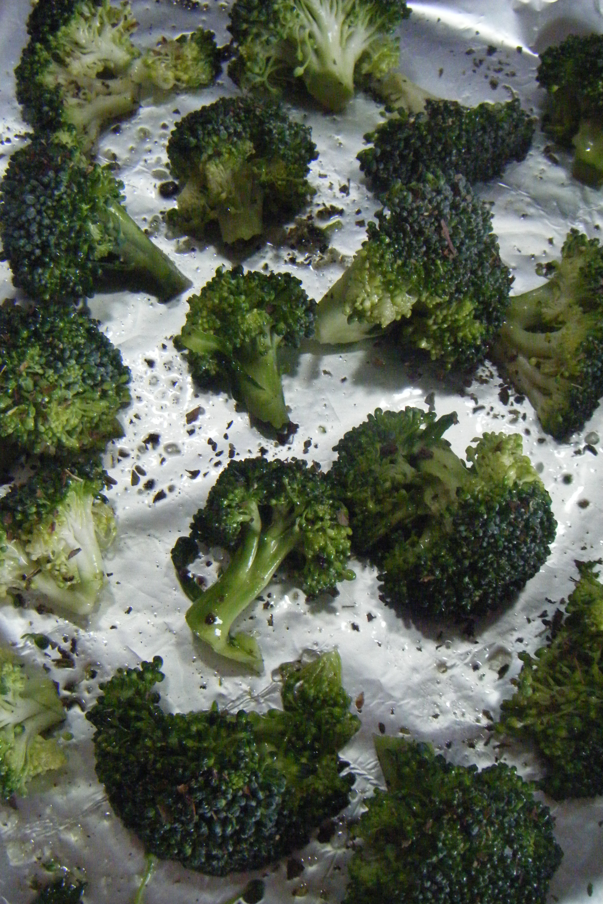 Preheat your oven at 180°c (fan oven). Lay your broccoli on a lined baking tray and drizzle with oil, salt, pepper and oregano. Put in to oven for about 10-15 minutes (I totally forgot about mine so it was more like 17).