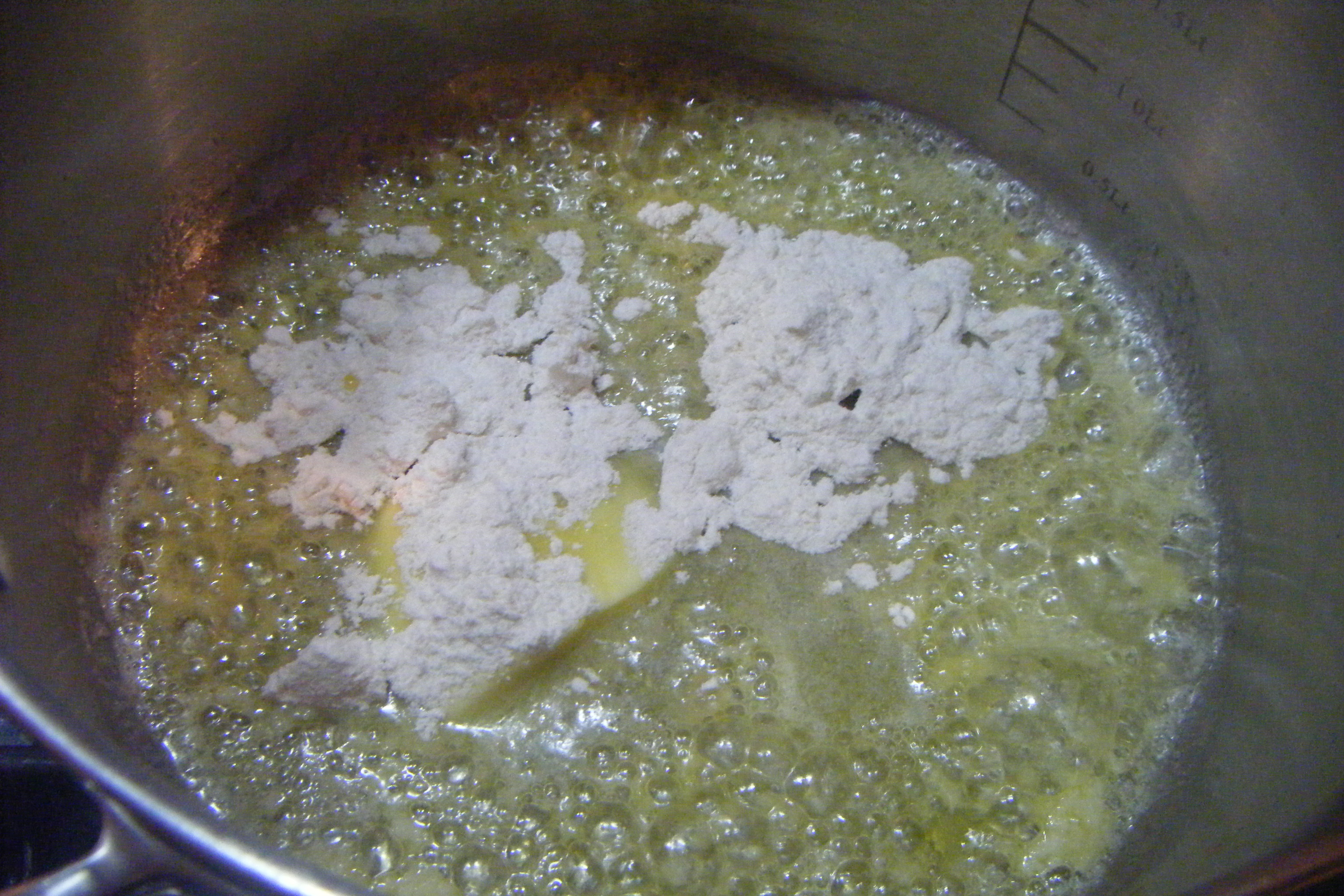 In a saucepan make the bechamel. Heat 1 x 15 g butter. Add the garlic (1 clove), add the flour and mix quickly. It will form a thick paste, add a little drop of milk and mix. Heat for about 30 seconds to cook the flour. Add the rest of the milk and djion and throw in the turmeric and fish sauce. Stir and bring to the boil. Continue stirring throughout as the mixture sticks to the bottom and burns. Once it just reaches boiling point, take off the heat and add in the 3 tbsp of cheese and some seasoning. It should be able to coat the back of a spoon and not run off. If it isn’t thick enough, heat gently for another minute.