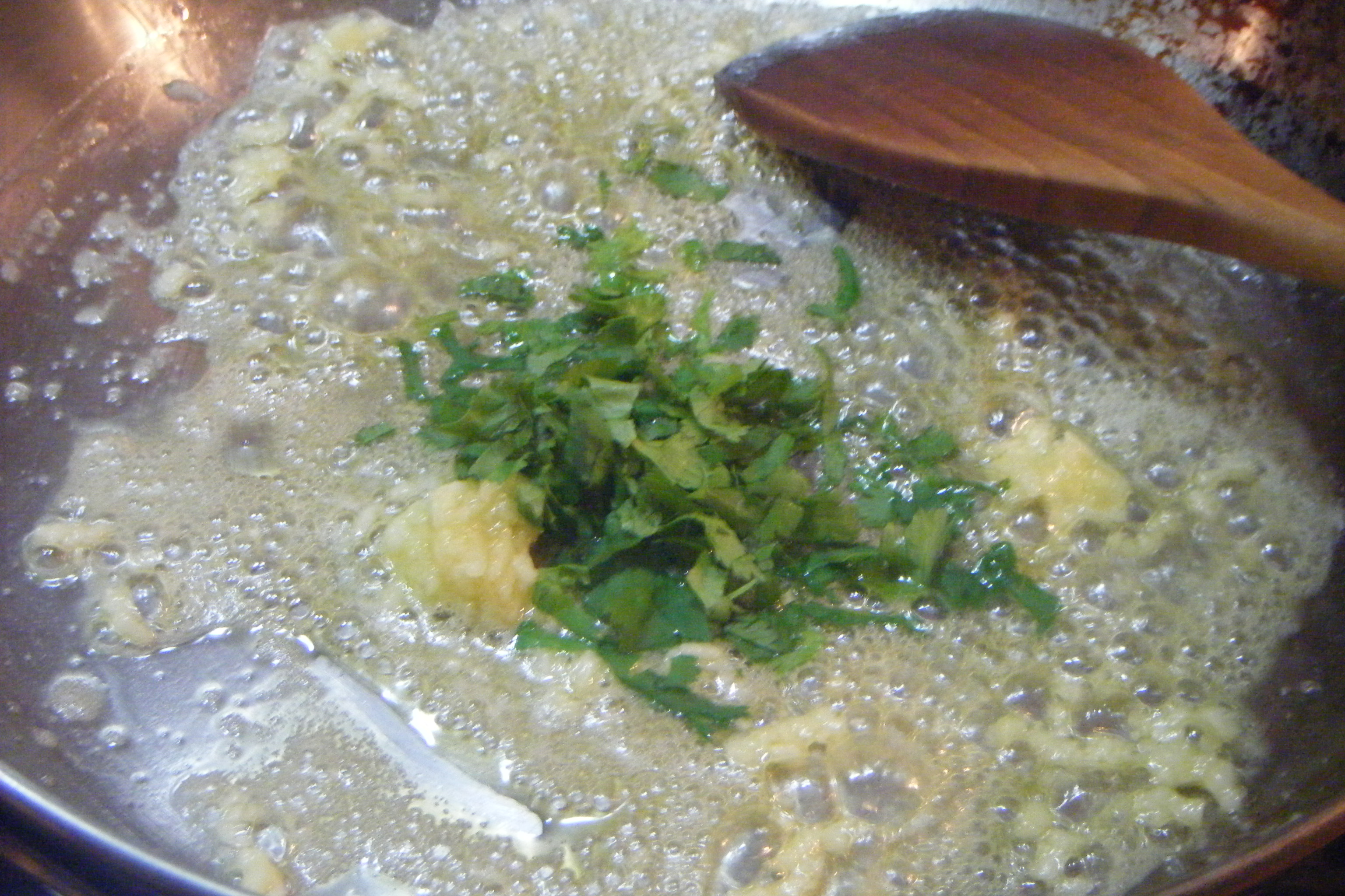 Heat the butter (15 g) in a saucepan, add the garlic (2 cloves) and coriander. Stir. Thrown in your claws and season. Gently toss them every minute. At the last minute, add the cream and mix.