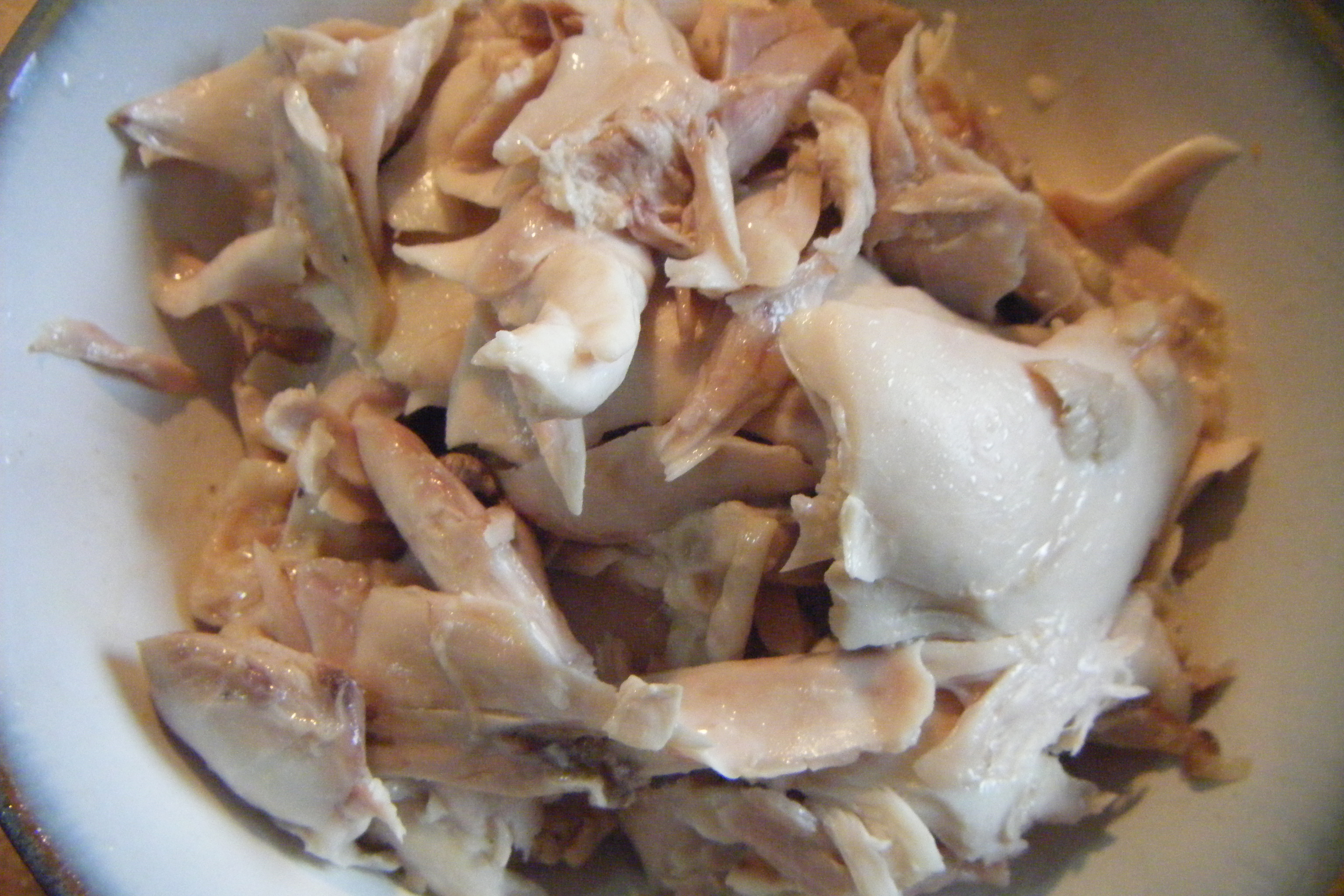 - the cooked meat from 2 chicken legs or 2 chicken breasts shredded