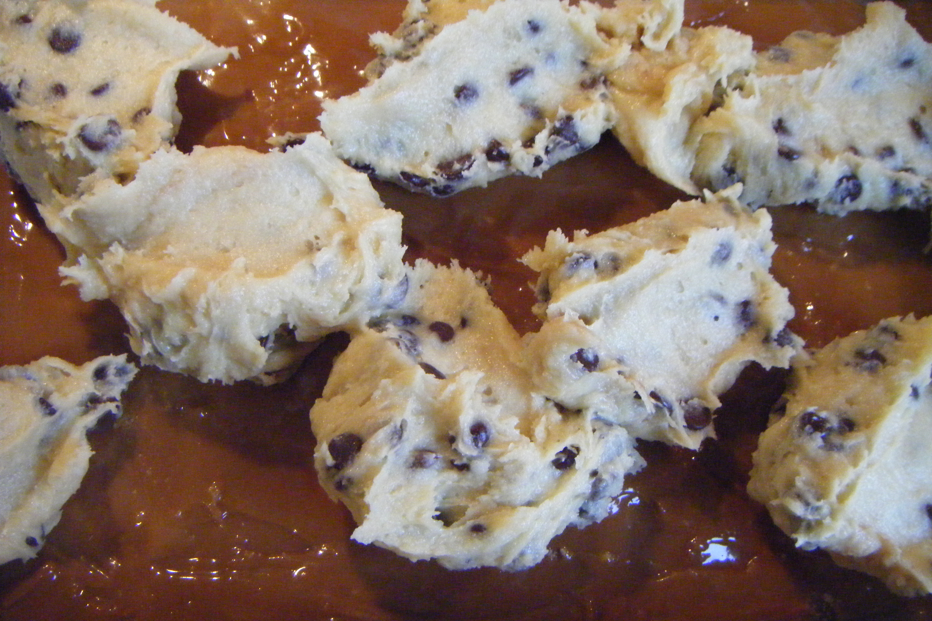 - 1 quantity of cookie dough (minus the egg and replaced with milk)