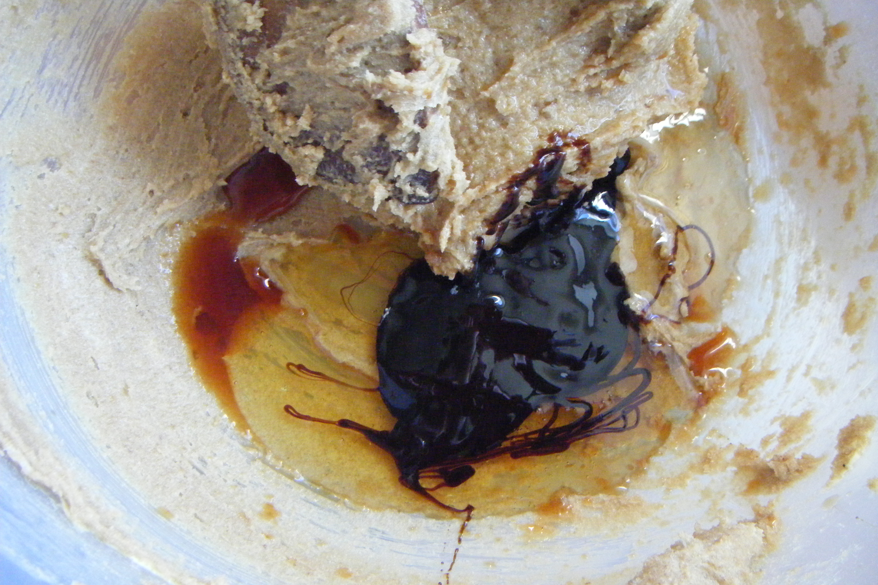 In a separate bowl, cream together the butter and sugar, then add the vanilla, honey and treacle.