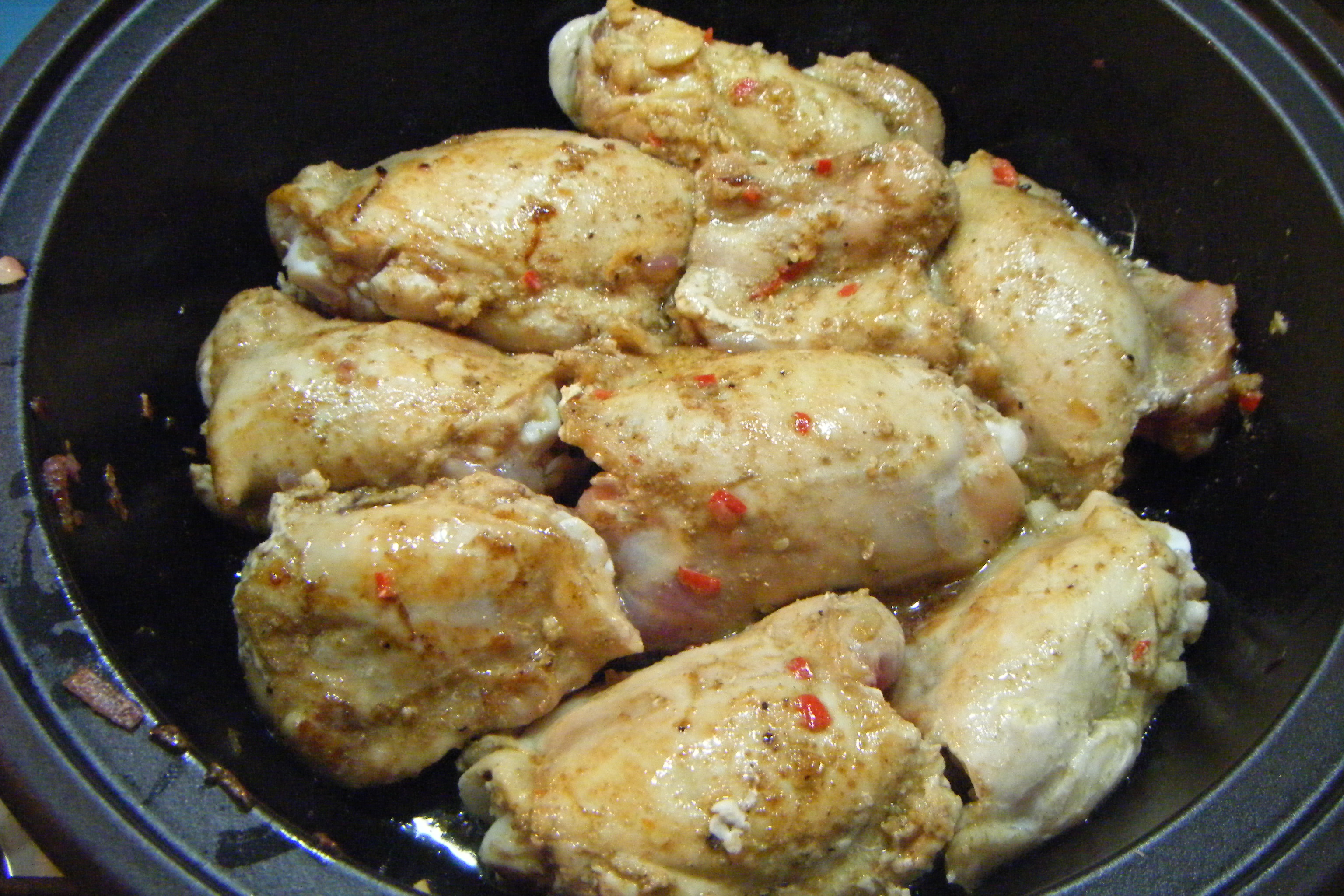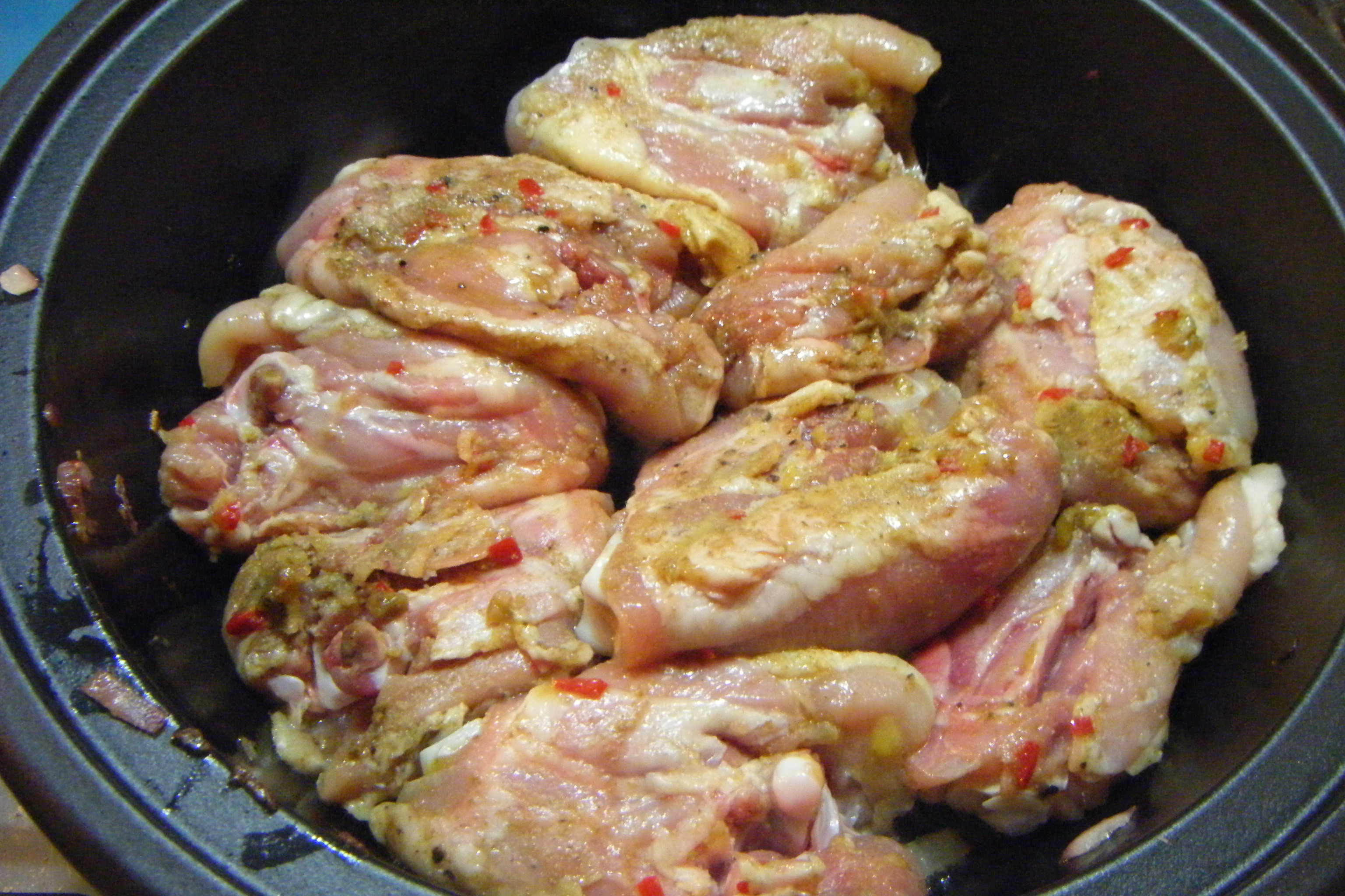 To make the marinade, mix all the marinade ingredients in a large dish. Add the chicken thighs and turn them in the marinade so they are well coated. Cover and marinate in the refrigerator for at least 6 hours, or overnight.