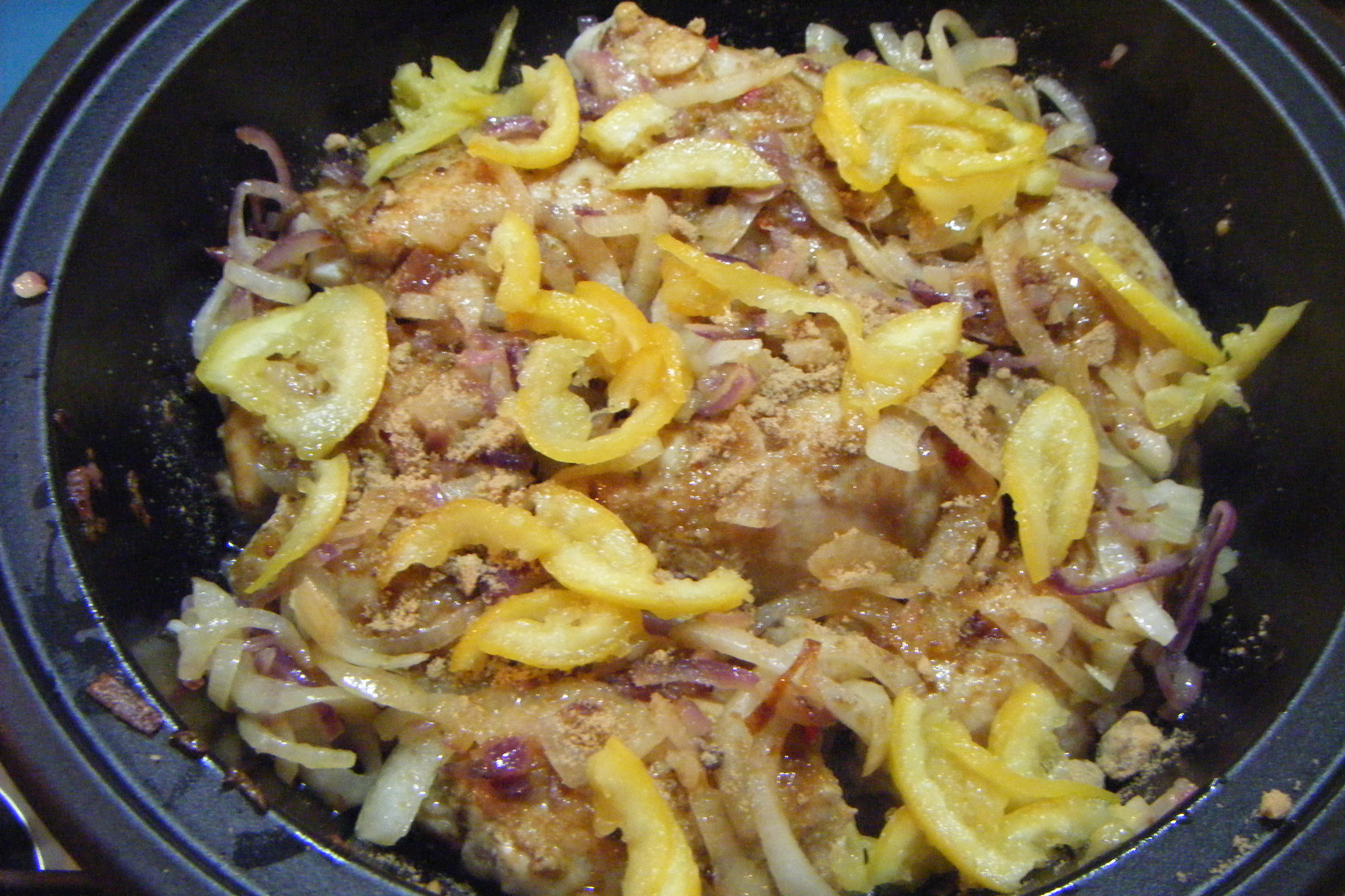 Return the onion to the tagine with the sugar, wine, and preserved lemons (or orange zest). Stir well and add a little more salt and pepper.