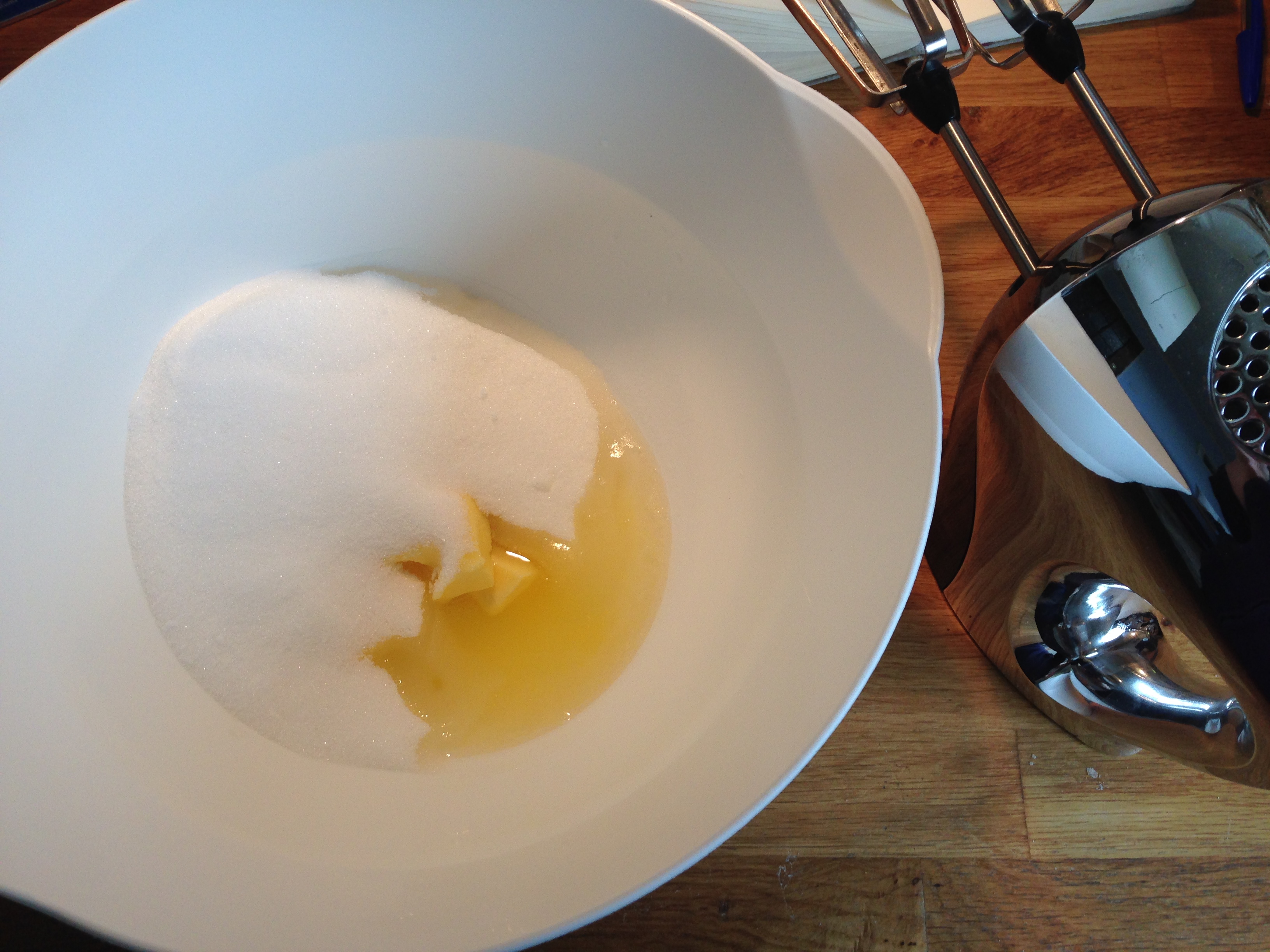 Whisk together the sugar, coconut oil and butter. It should be fluffy and light in colour once done(a couple of minutes). Don’t worry if it looks a little crystal like at this point. Add in the eggs, one at a time and beat well in between each egg addition. Then add the vanilla and whisk.