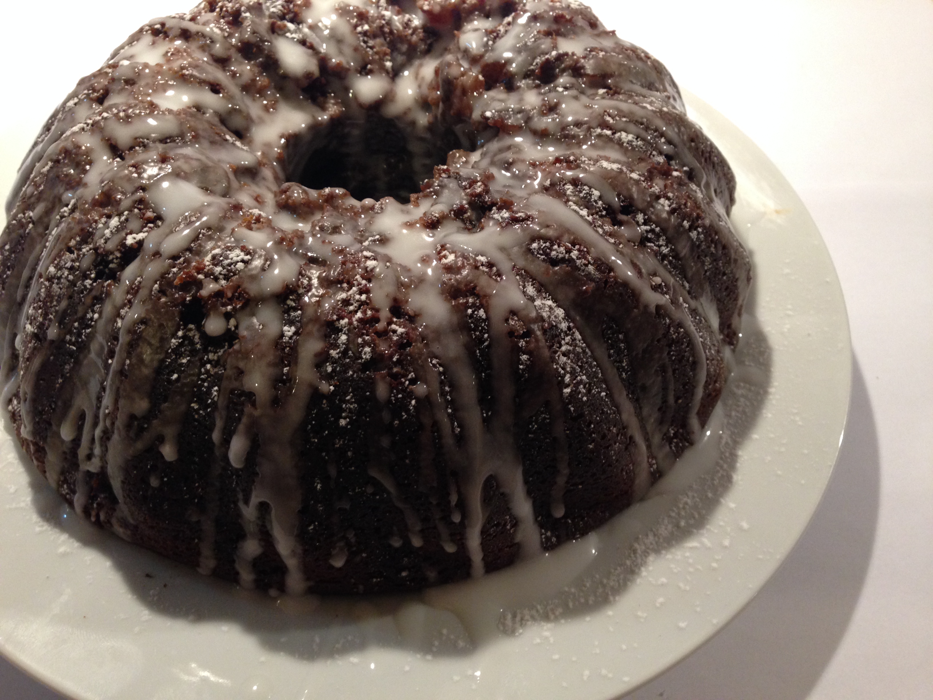 When the cake and glaze are completely cool, drizzle the glaze over the cake and serve.