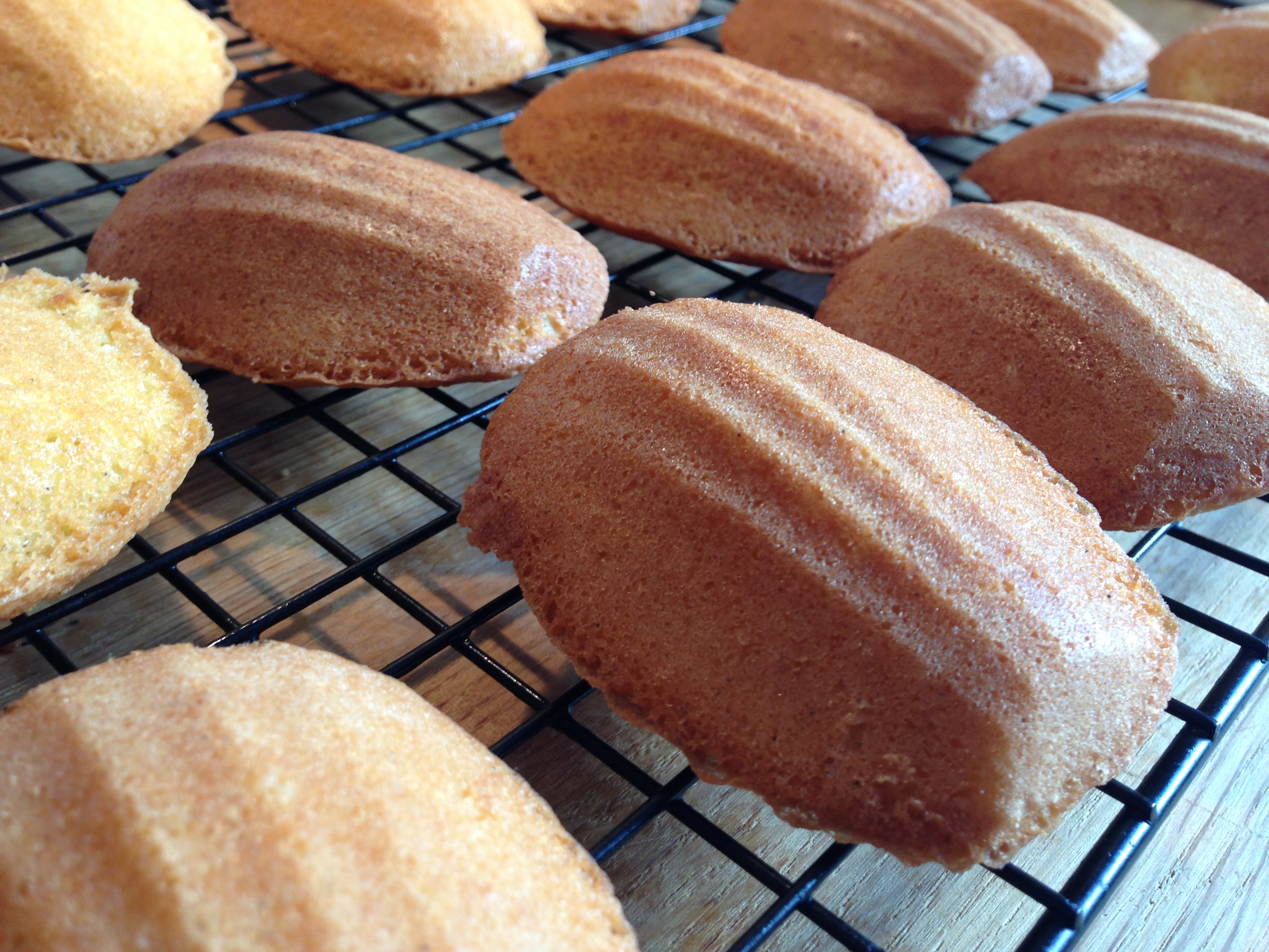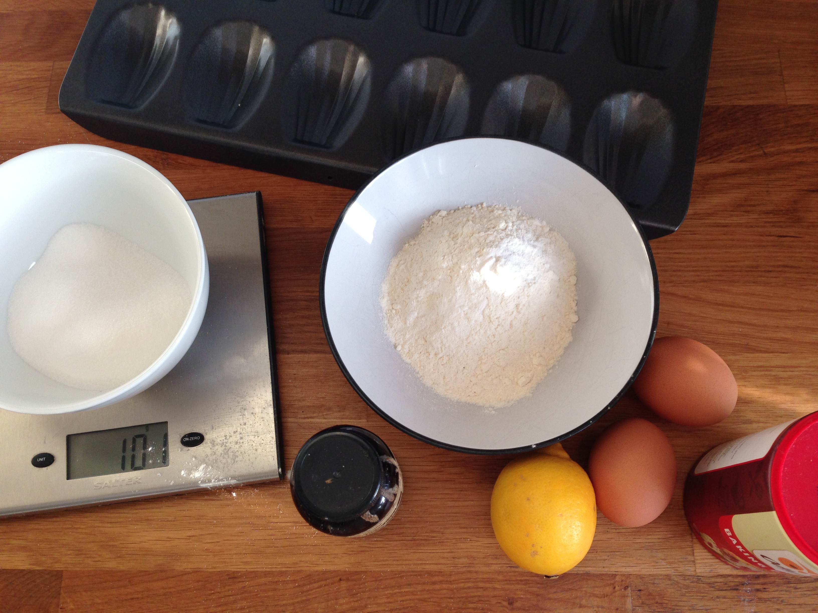This weekends treats are Madeleines. These are small little sponge cakes, with a distinctive shell-like shape. Last week I bought a new madeleine baking tray. The lines are not as defined as I would like but still make lovely little treats. So here is my recipe…