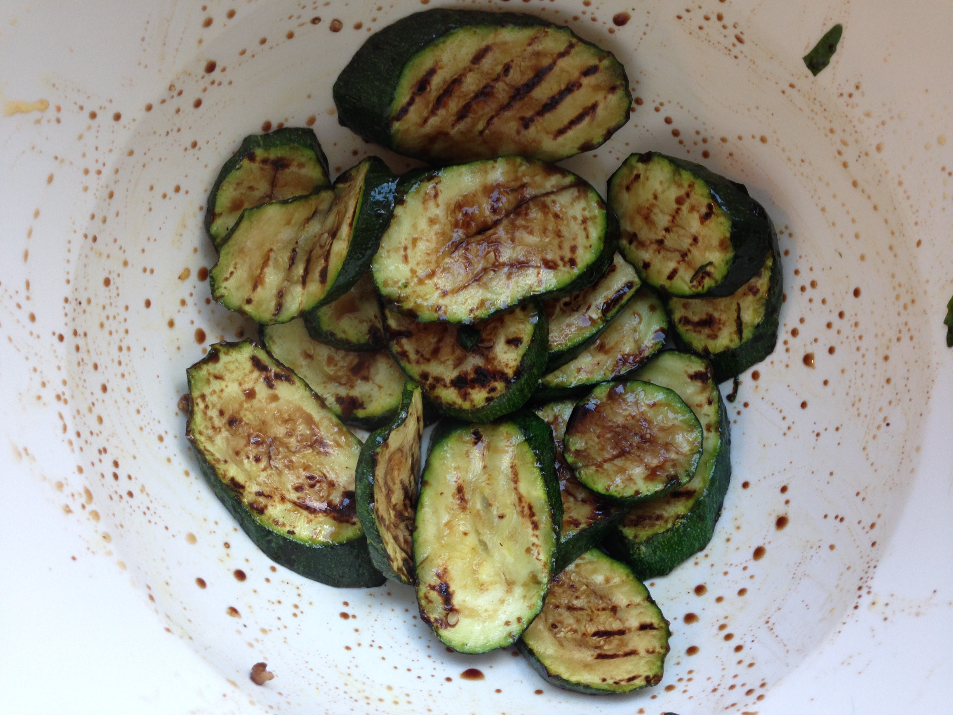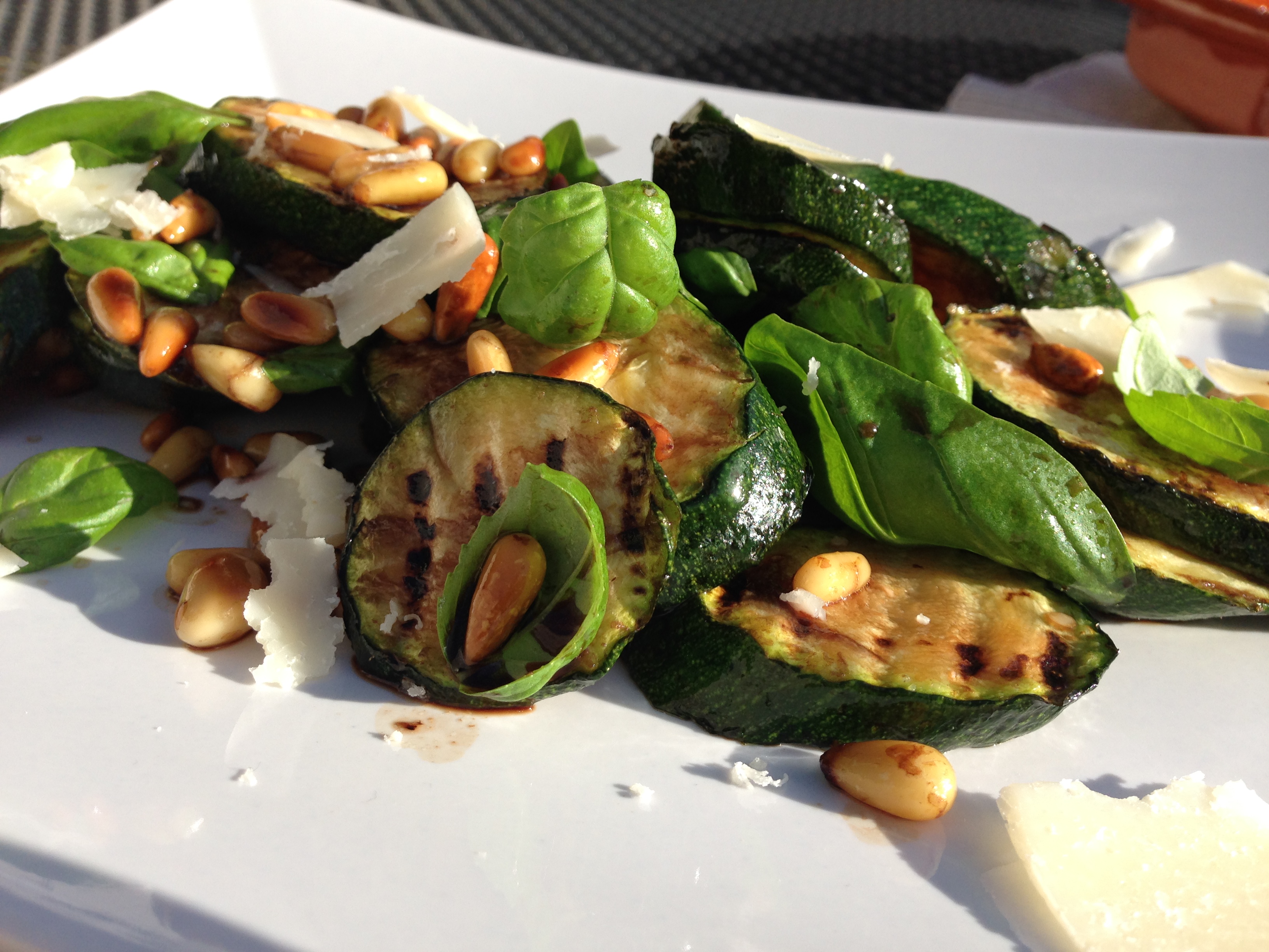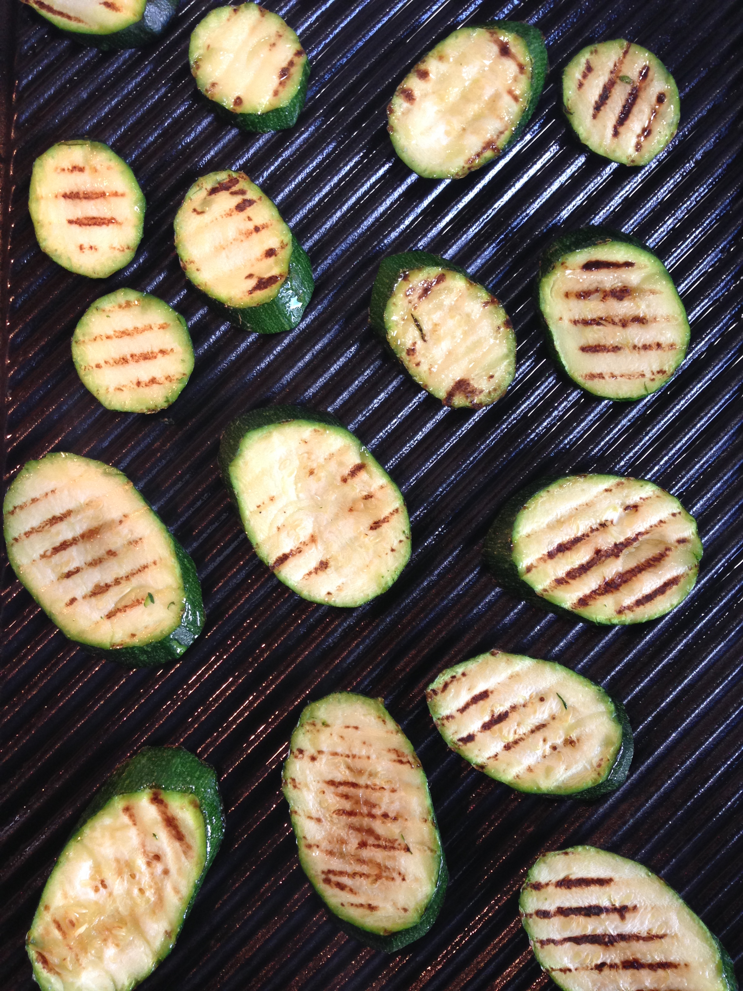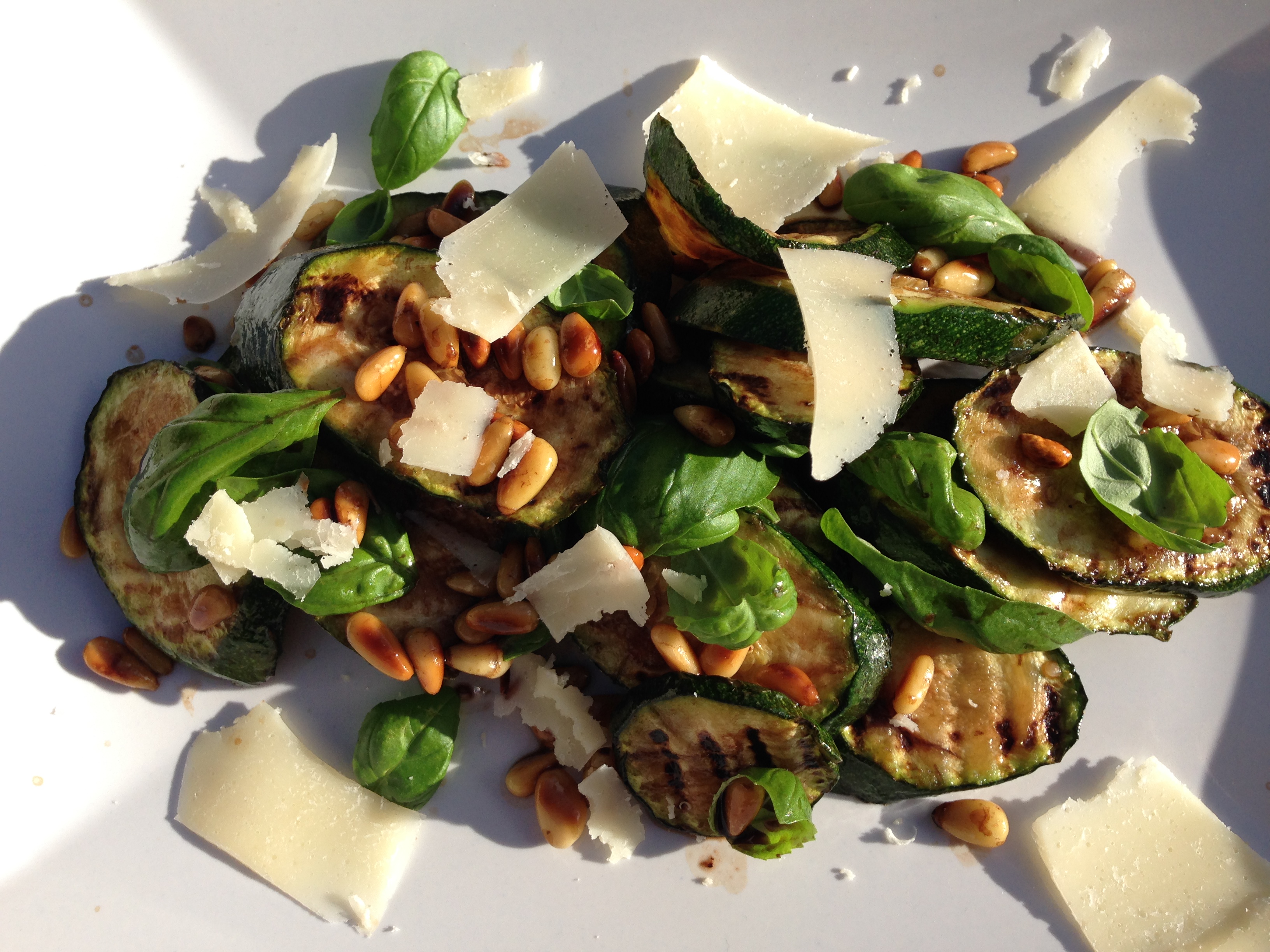 My mother used to make this delicious salad (although at the time I wasn’t quite convinced), with grilled courgettes, mint, pine nuts and some sort of soft white cheese. I think it was goats cheese. I’m sure my mother will give me a call when she reads this and correct me. My salad is fairly much the same. But I have tweaked it to our tastes.