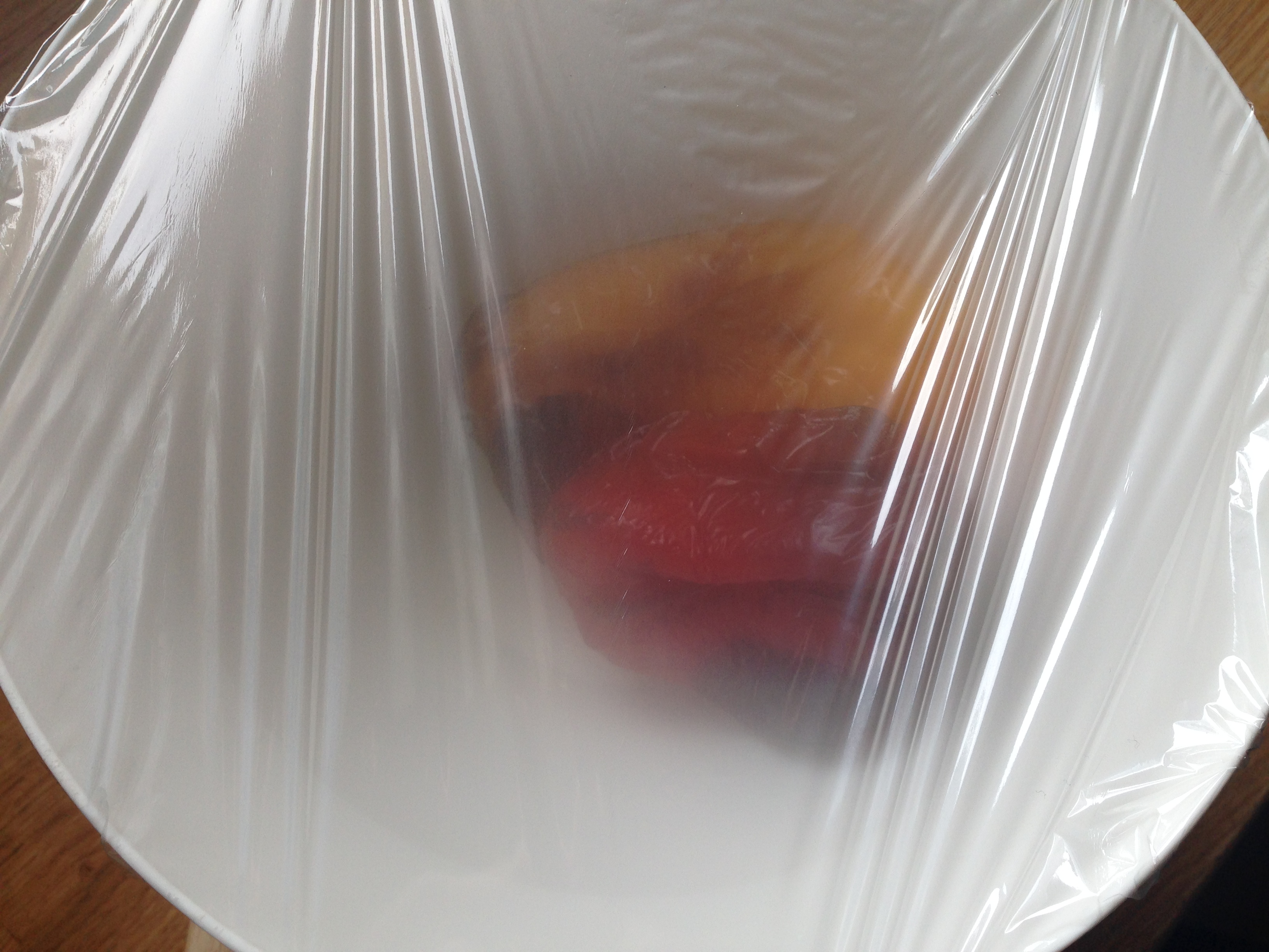 Remove from the oven and place in a bowl. Cover the bowl with cling film and leave to cool.