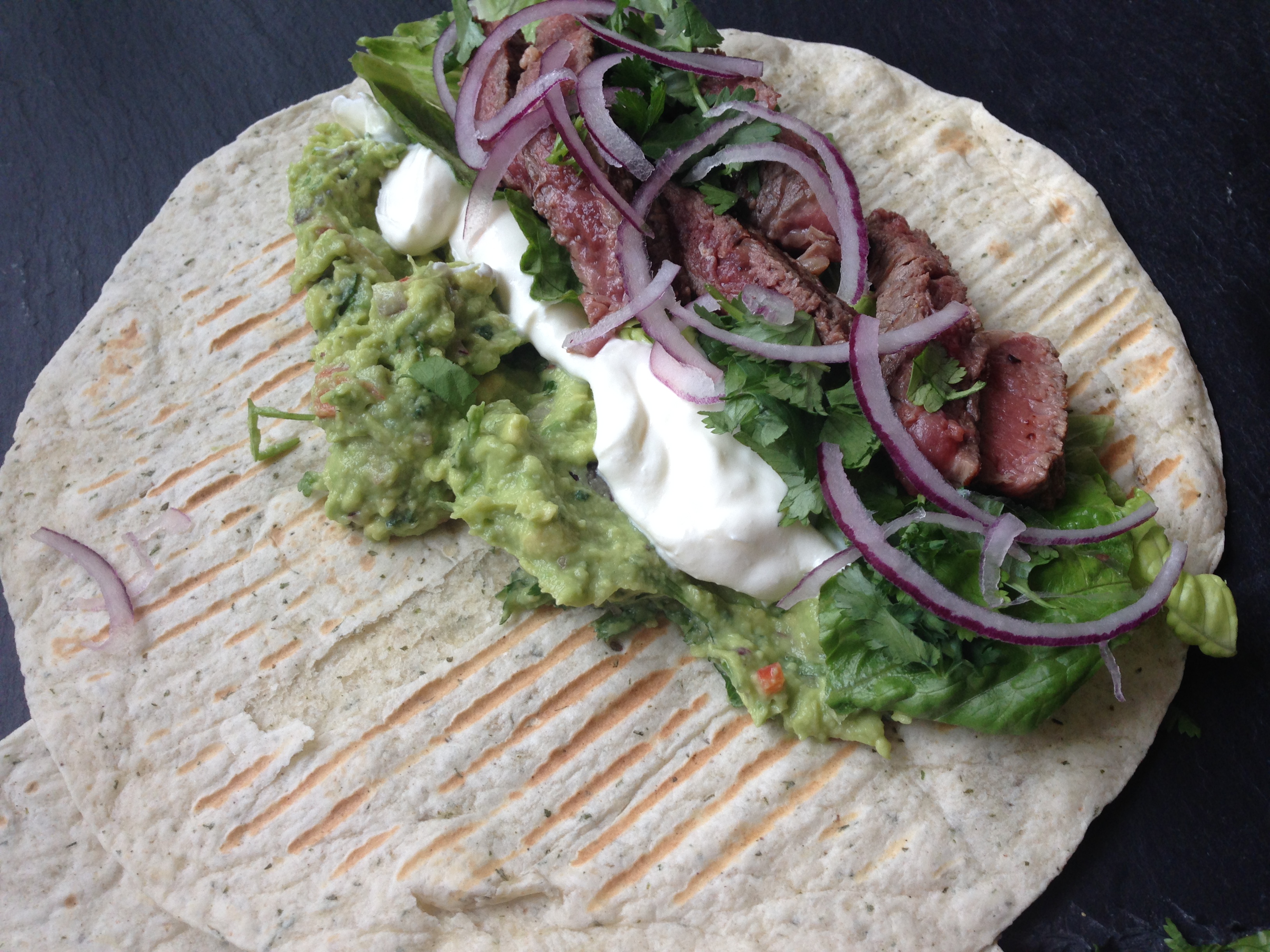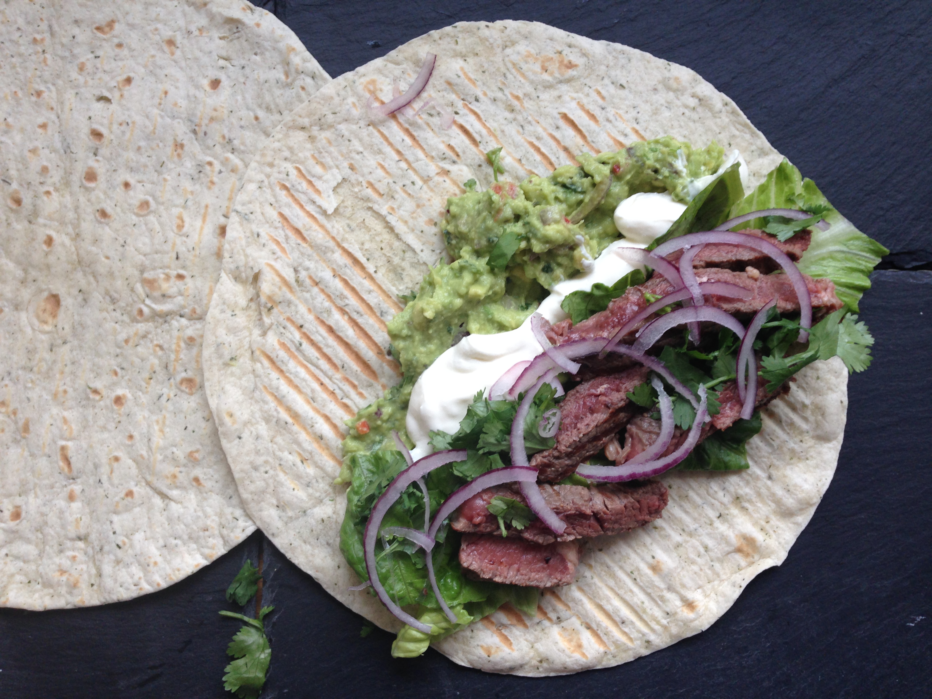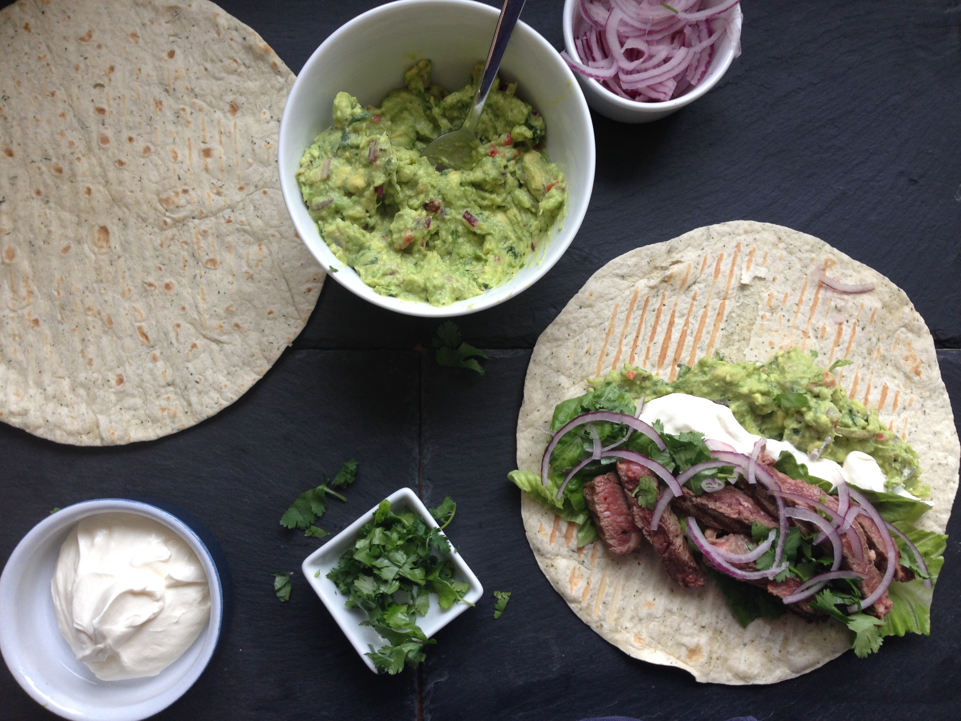 The great thing with this dish is that, apart from the steak and the tortillas, you can add anything you like. Radishes are fab in this dish too and any number of salad ingredients.