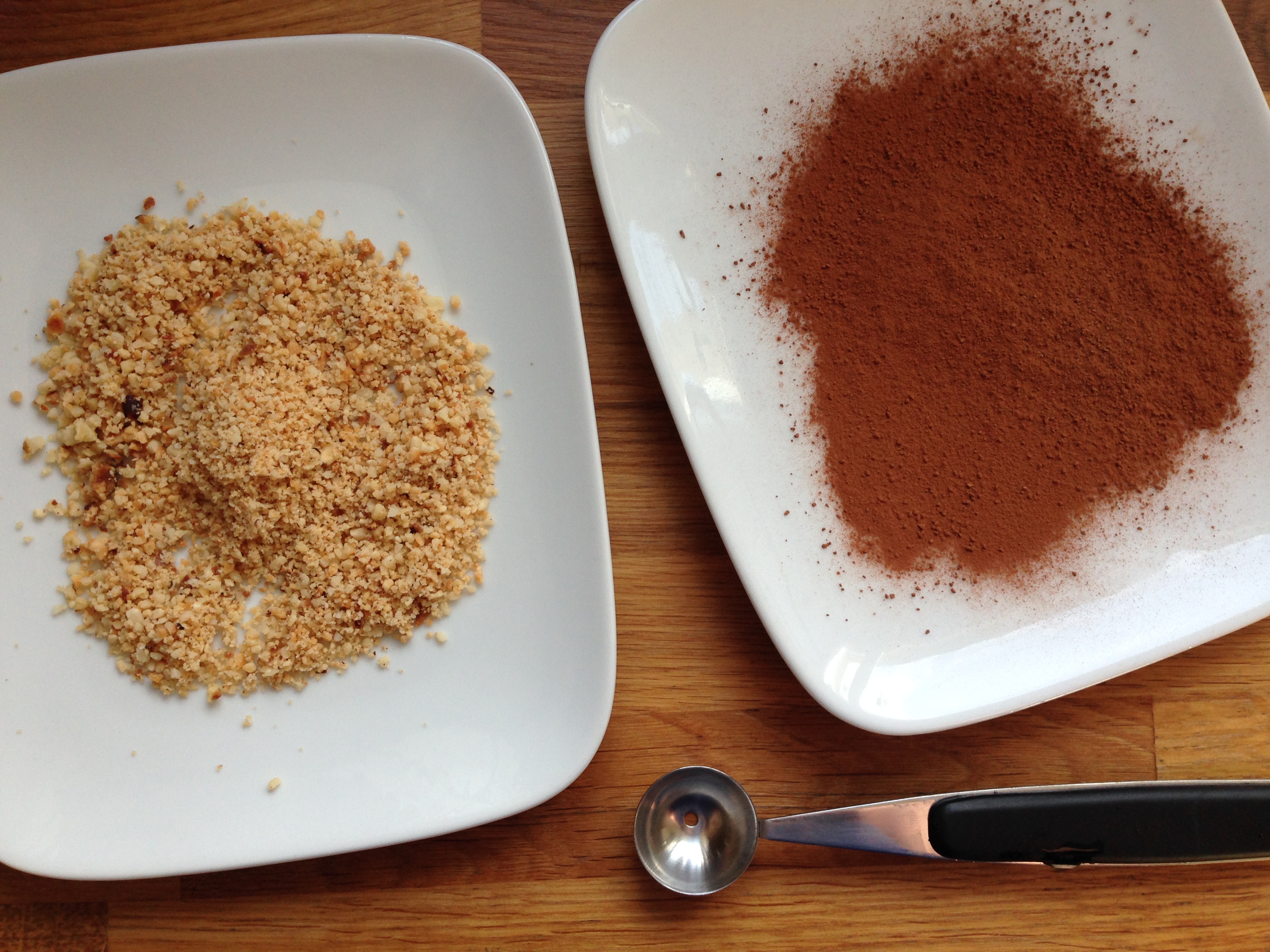- 100 g nuts (I like hazelnuts), finely chopped. I give them a whizz in the blender to make them fine but not like powder. You want them to still have some bite.