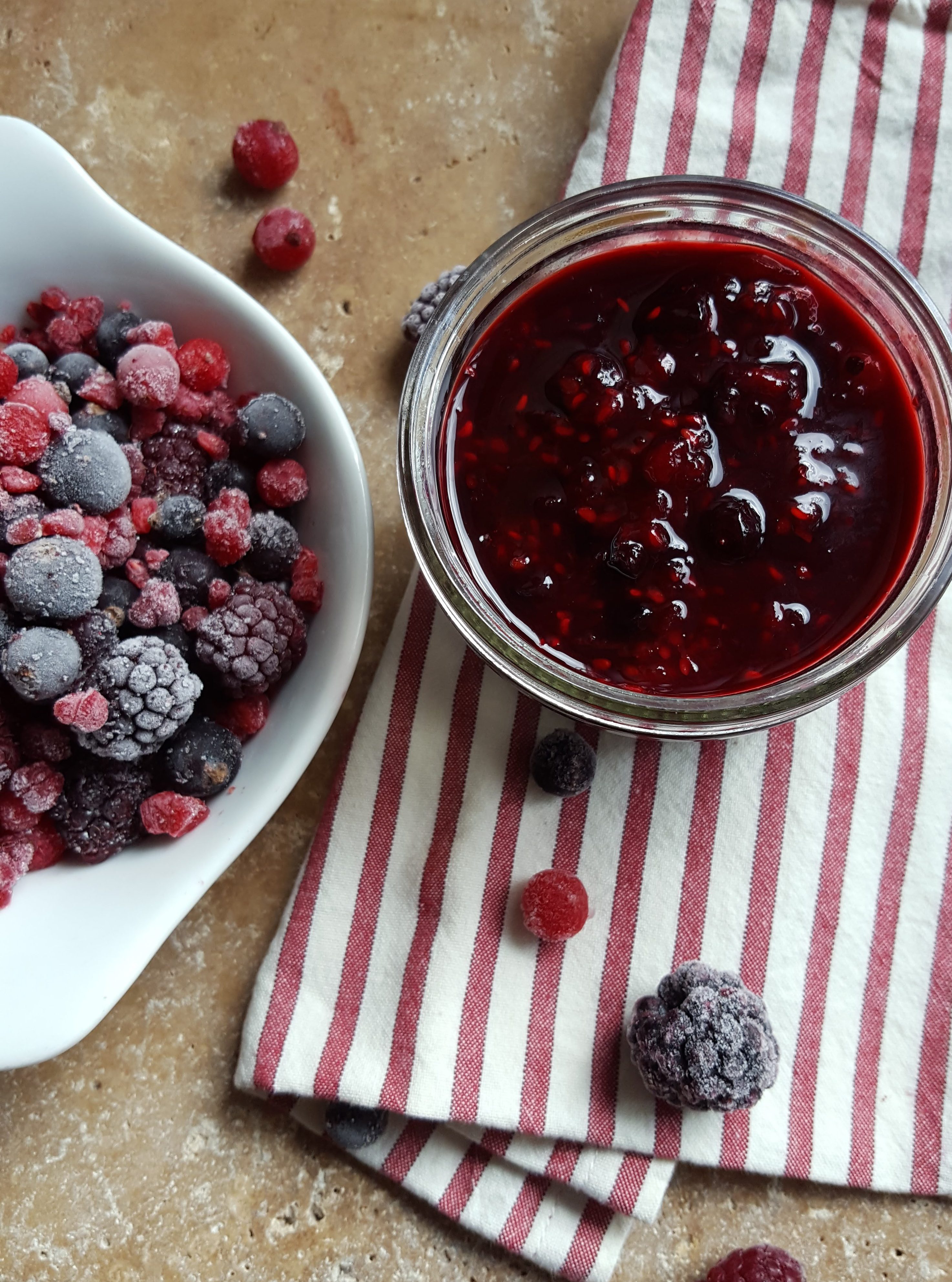 A bit like jam, you throw together some ingredients but rather than letting it bubble away, just give it a few minutes on the hob and you have a chunky berry compote.
