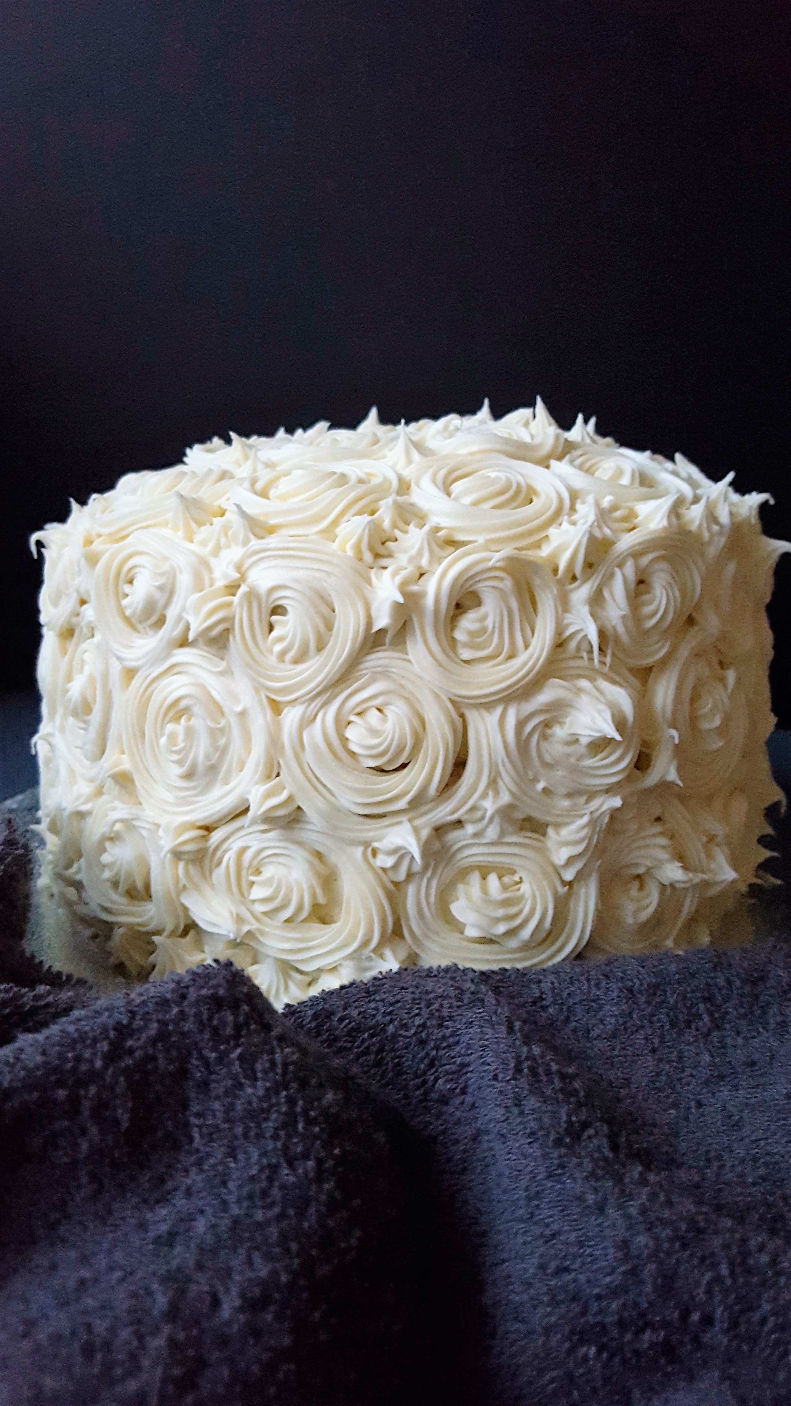 I chose to pipe rosettes onto the cake but you can decorate in any way you like. With a smooth frosting or with ripples or dots etc.