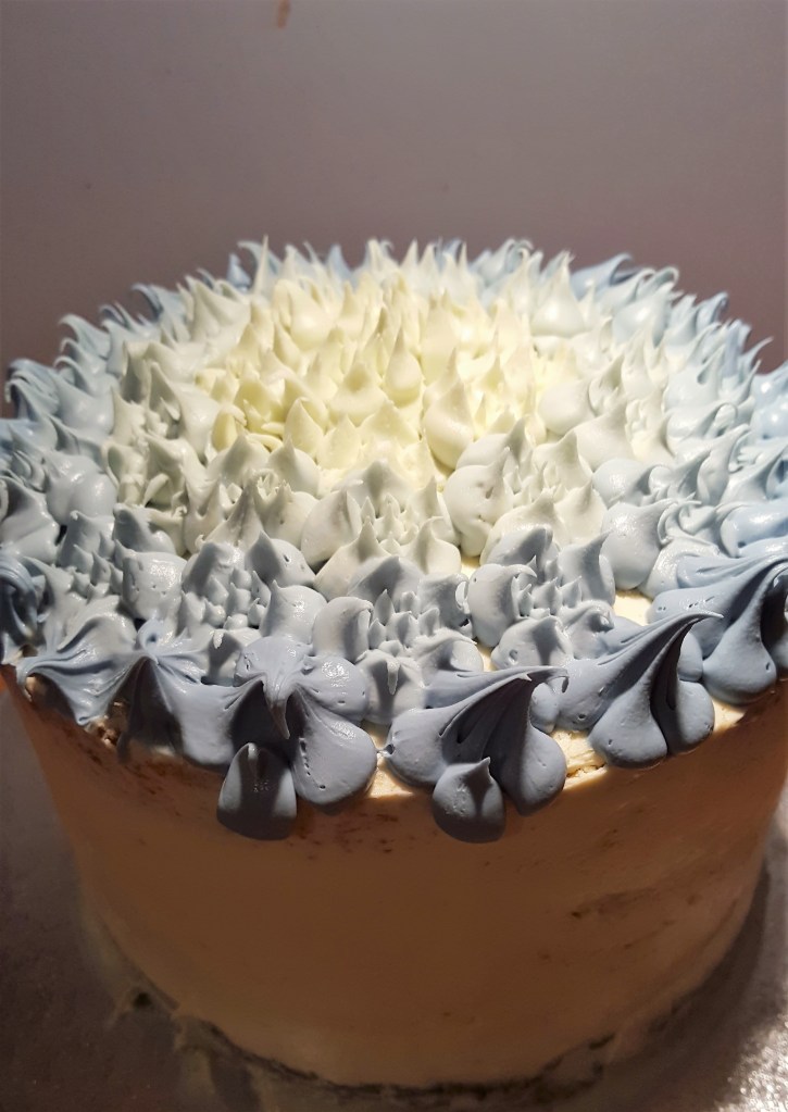 Super yummy cake, blue for our little boy and thoroughly enjoyed by all.