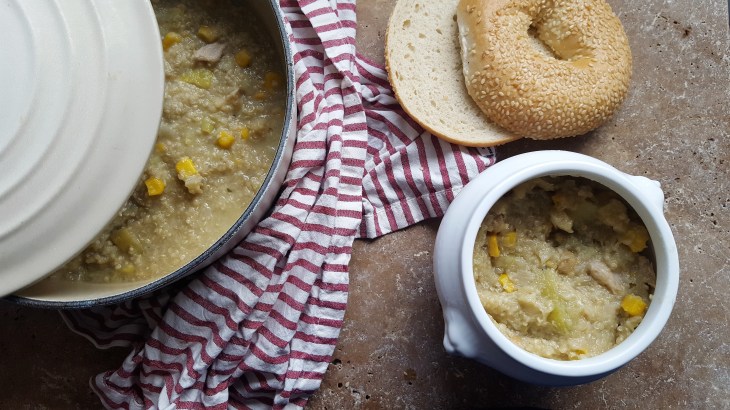The reason this is called the everything leek and potato soup is that I literally threw a bit of everything into it, anything that I had in the fridge went in including sweetcorn which is one of my sons favourite foods at the moment or at least used to be.