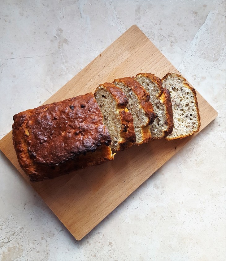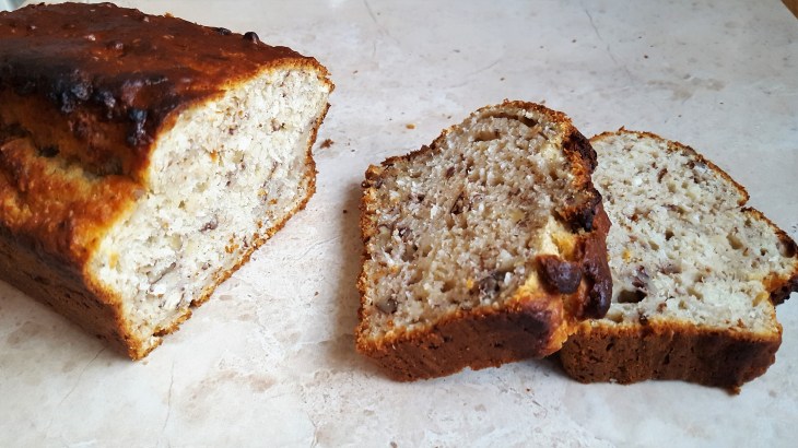 So anyway I found the cause of the odd smell that has been lingering in my kitchen the last day or two. A pile of bananas on the verge of being overly ripe so decided to use them up rather than throw away. Normally bananas don’t last a second in our kitchen but I forgot that Alexander was going away and in my weekly weekend shop I stocked up as usual. Well they have served their purpose and I will save Alexander a slice of this for when he arrives home.