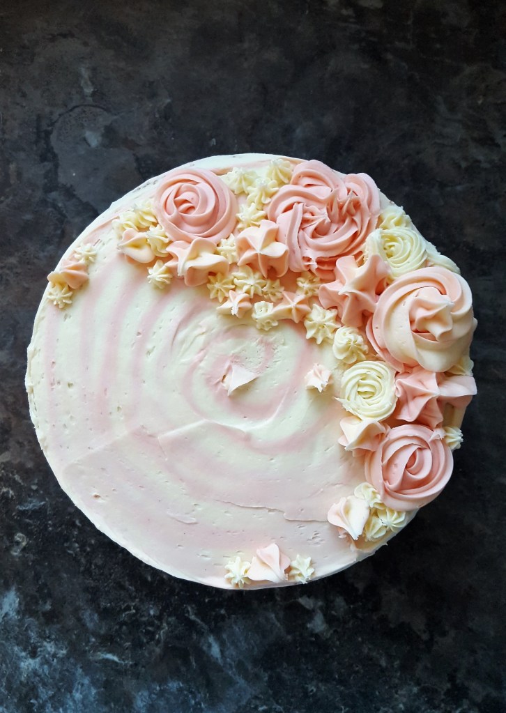 The recipe for this cake is my victoria sponge which can be found in my archives. Same cake every year for tradition’s sake, but decorated differently each time with butter cream icing.