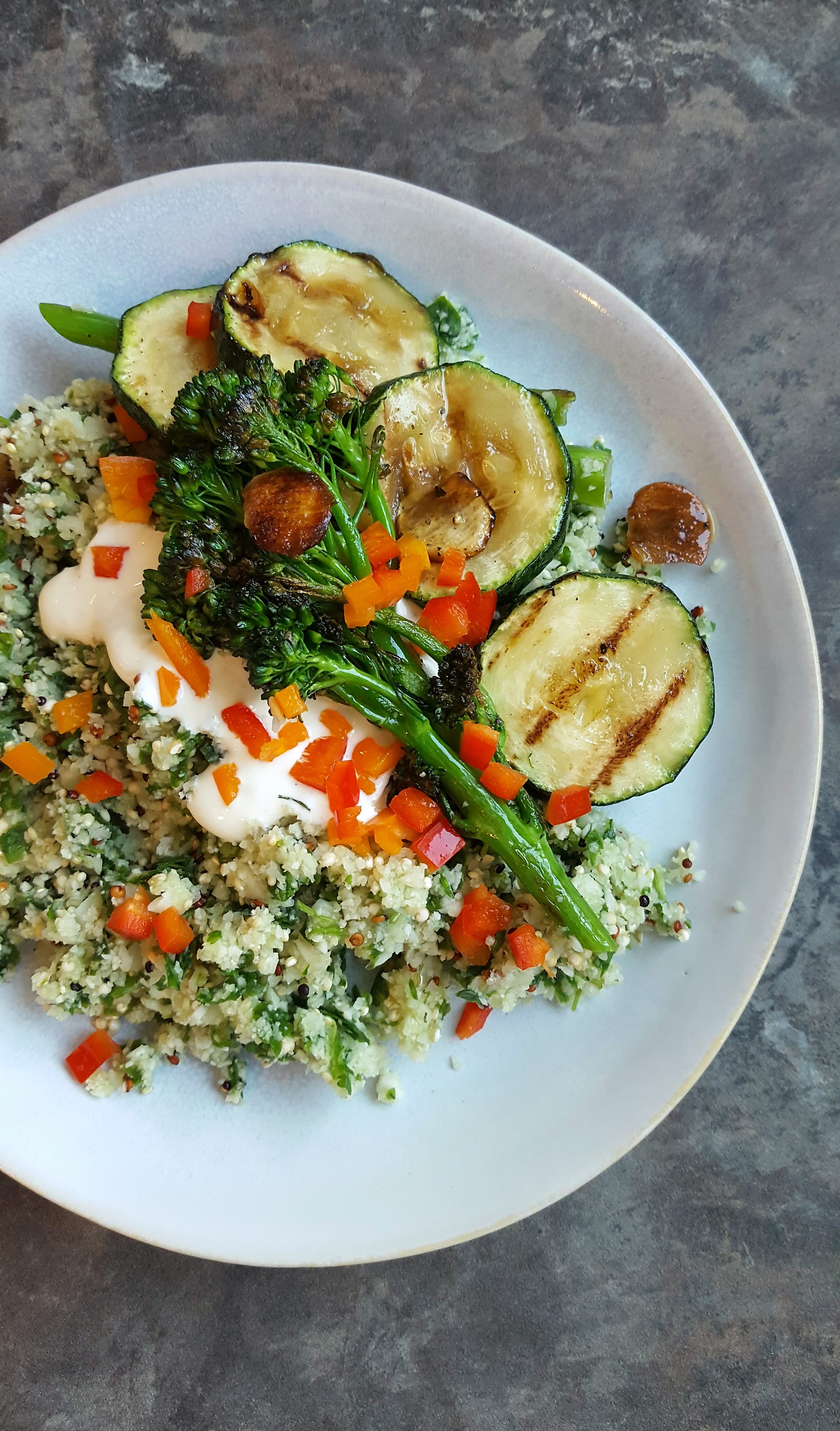 Cauliflower, Spinach and Grilled Vegetable Salad