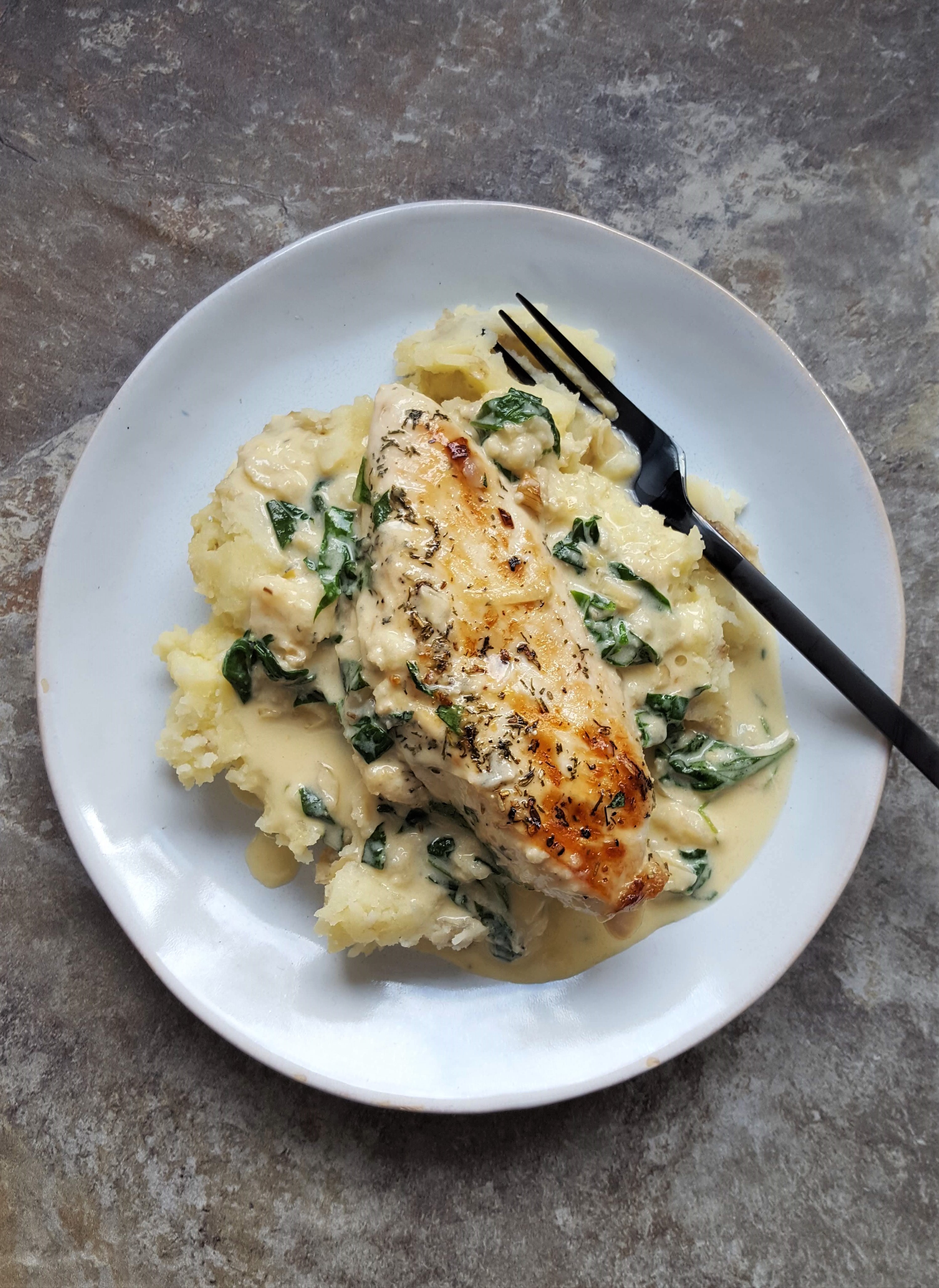 This one pan chicken is a perfect dish to put together when the weather outside is getting cooler and you need a little comfort. I am particularly fond of this with creamy mash potato, but also works well with pasta or just a big helping of vegetables. With it being a one pan dish, it is much easier, less cleaning up afterwards, it is quick to get started and is perfect for people trying to multitask with getting the kids homework done, bath time, laundry or whatever you have going on, this one is a good one!