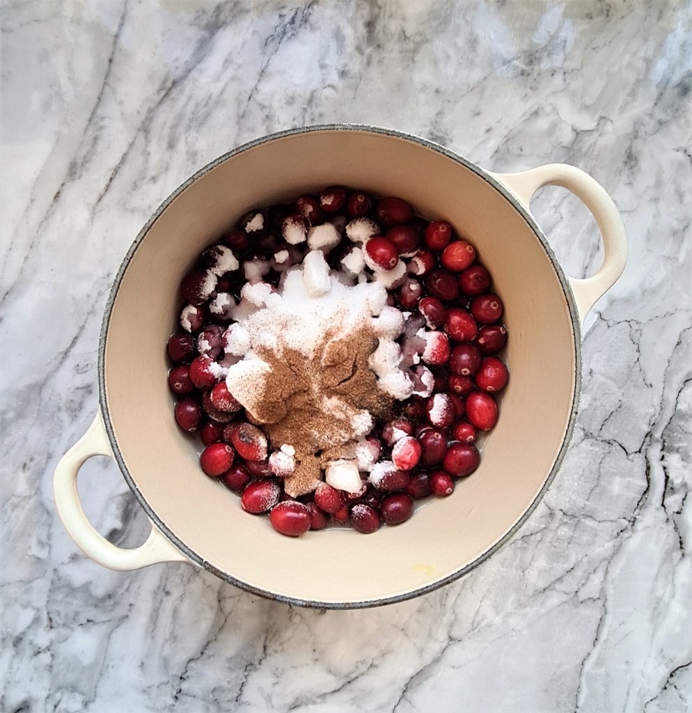 Although we are going simple this year, I still make my cranberry sauce. Cranberry sauce makes everything work in my opinion, and while I could totally buy it and did until last year, making it is very simple and really makes all the elements of Christmas dinner work together. I have two recipes for cranberry sauce. A very simple subtle one and this spiced version, which just adds that little something extra special to the dish. The warming fragrance of nutmeg and cinnamon make this sauce extra Christmassy.