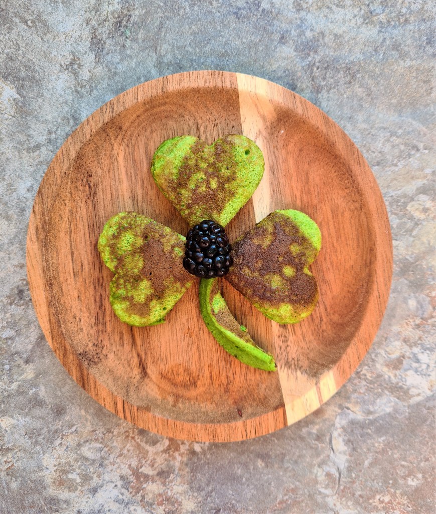 These green pancakes are super healthy and so delicious. They have a thicker fluffy texture like an American style pancake and pair with foods like bacon and berries, just as well as regular pancakes. And because of their vibrant green colour, they are perfect for St. Patrick’s Day for all the family.