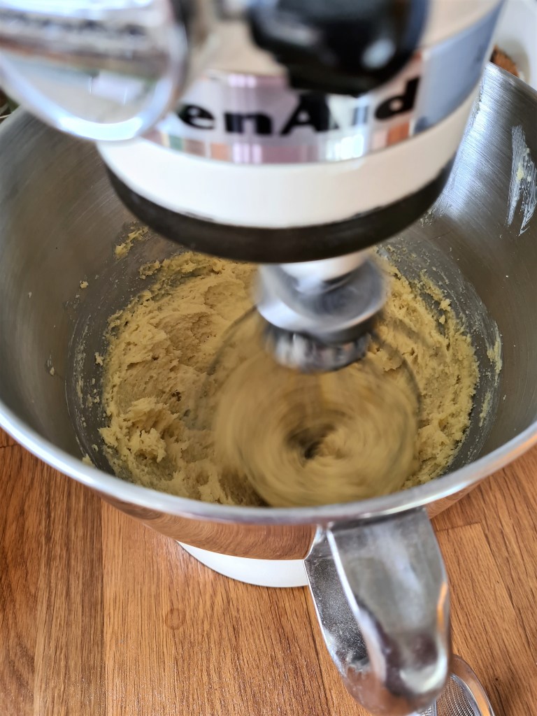 Add a third of the flour/cocoa mix and mix on low speed/gently for about 20 to 30 seconds.