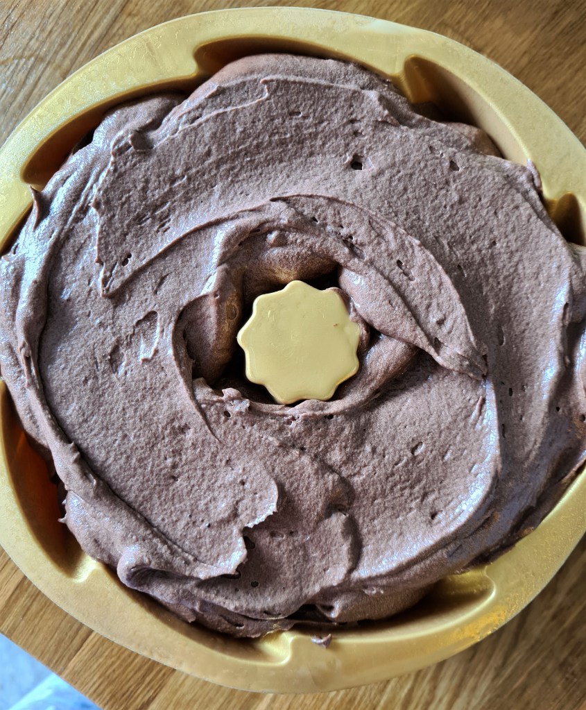 Spray or line a cake or Bundt tin with non stick baking spray/parchment.