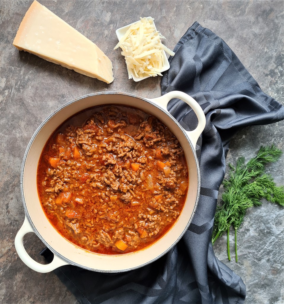 This Bolognese is just so good. It is rich and earthy and so aromatic. The longer the sauce cooks, the richer it becomes and when you add pasta, the sauce coats the pasta beautifully.