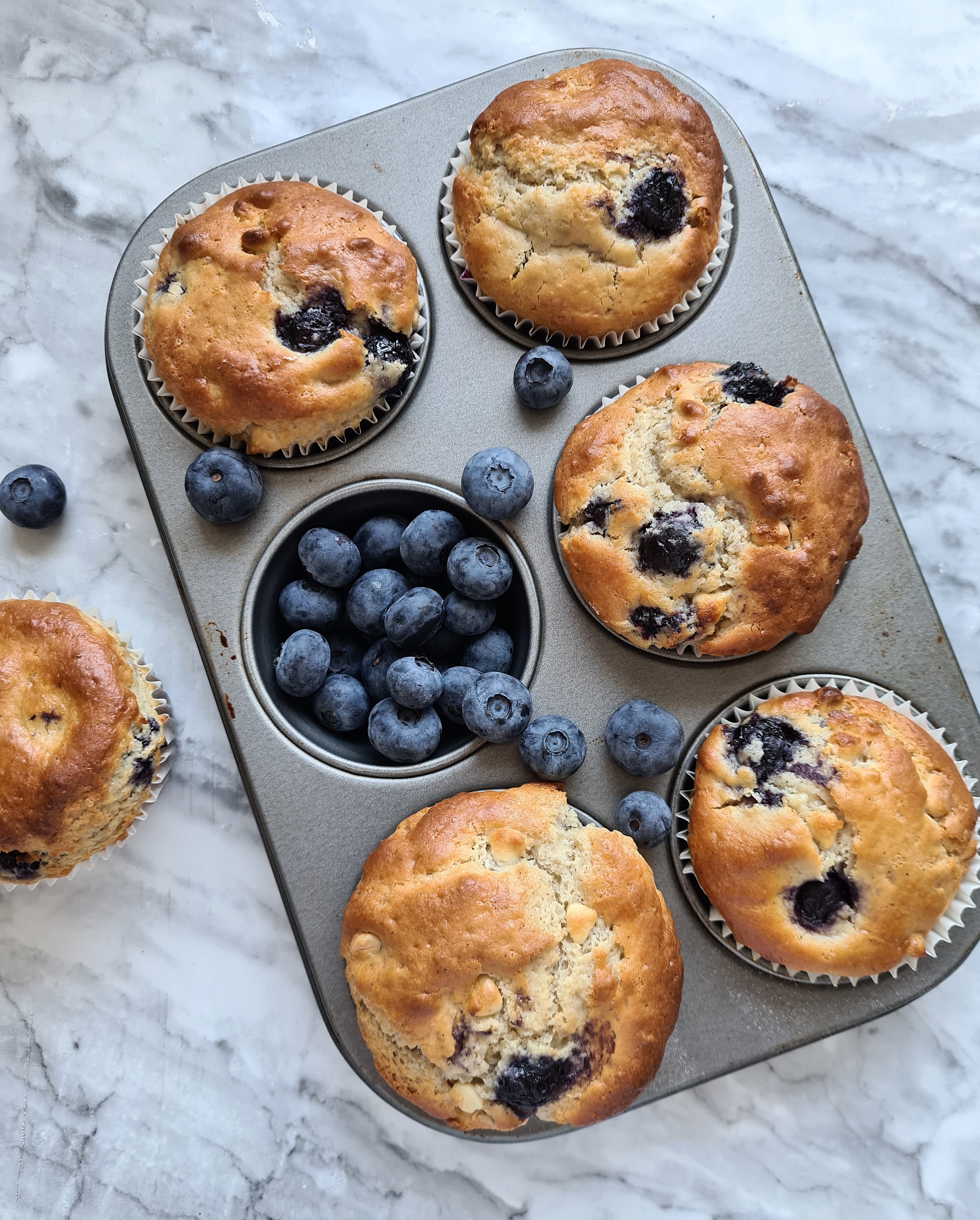 I think everyone needs a simple blueberry muffin recipe in their back pocket to grab at any time. This recipe is made using mainly pantry staples with the addition of yogurt, milk and frozen berries, which we pretty much always have to hand in the fridge.