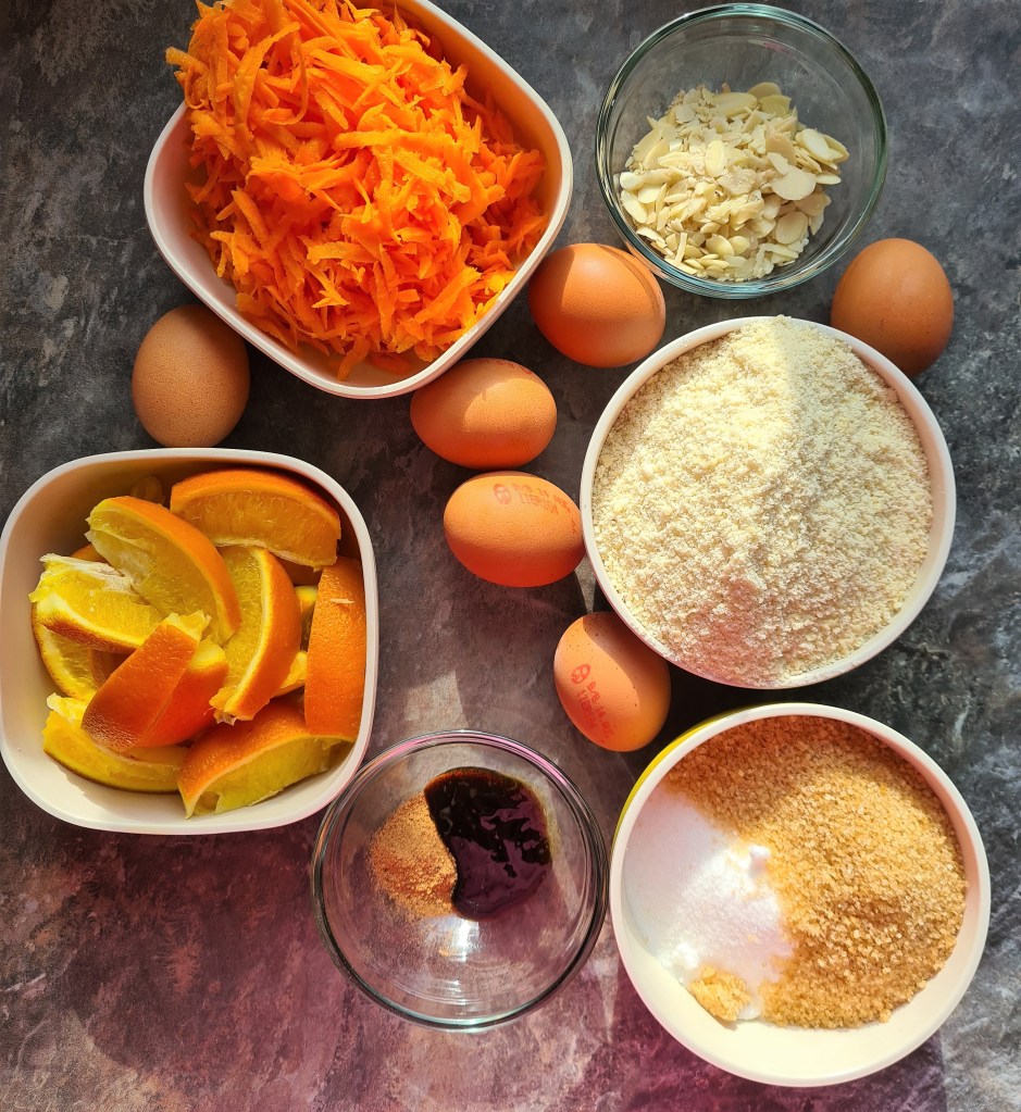 I know, it is unusual to see carrot in this type of cake but believe me it works. I love orange and almond cake and have recently just been trying to include more vegetables in mine and my son’s food. While this is not a ‘healthy’ cake per say due to the sugar content, it is still gluten free and packed with nutrients from the orange and carrot. This cake is also dairy free.