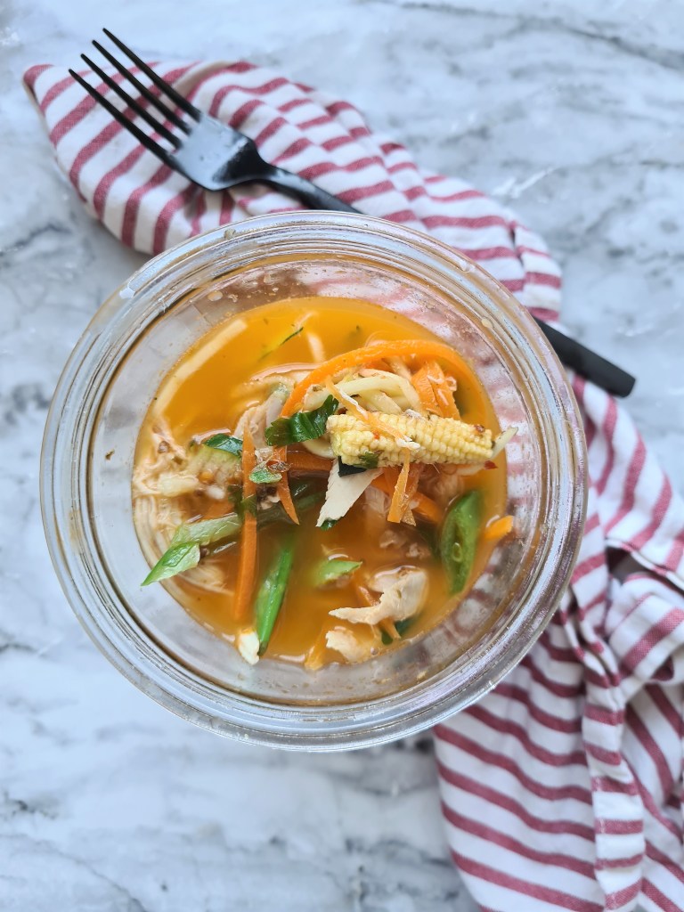 Today I am sharing my Thai red chicken curry pot noodles in lieu of the recent news from the government about the upcoming return to work. These pots are spicy, wholesome and delicious. Packed full of goodness and made with our leftover Sunday roast chicken.