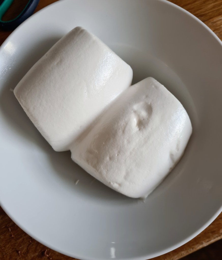 Leave the muffins to fully set for about an hour. I do this as the marshmallow webbing can be very very sticky but after about an hour they stop being sticky and are just springy. This means it is easy to pick up and eat but can also be put inside a school lunch box, on a party platter etc without causing sticky issues.