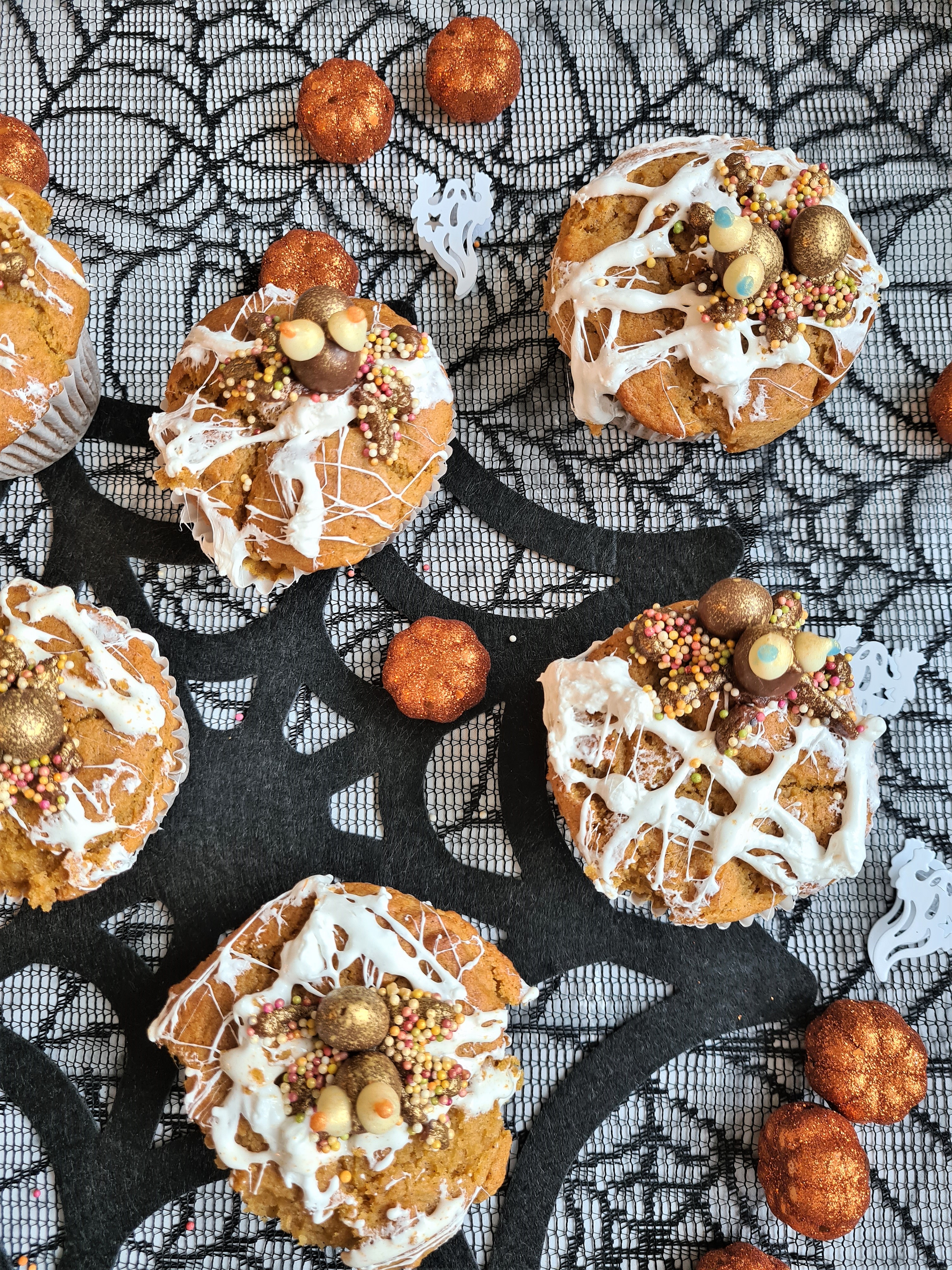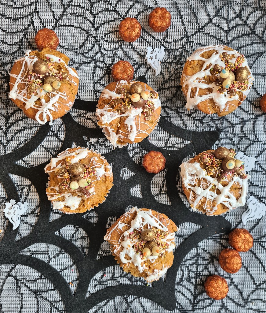 SPOOKY SPIDER WEB PUMPKIN MUFFINS