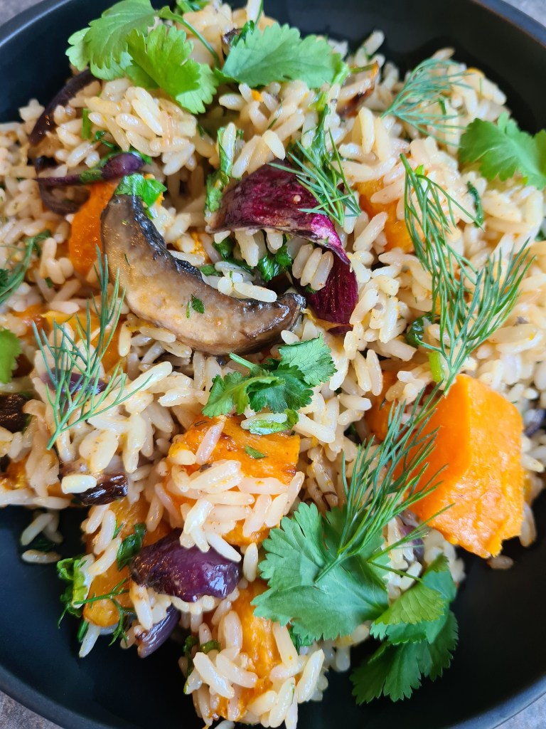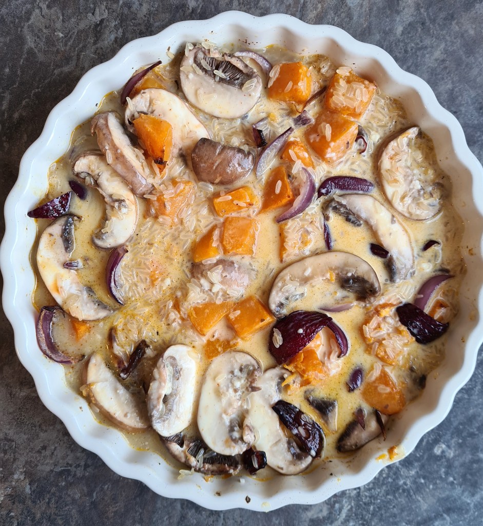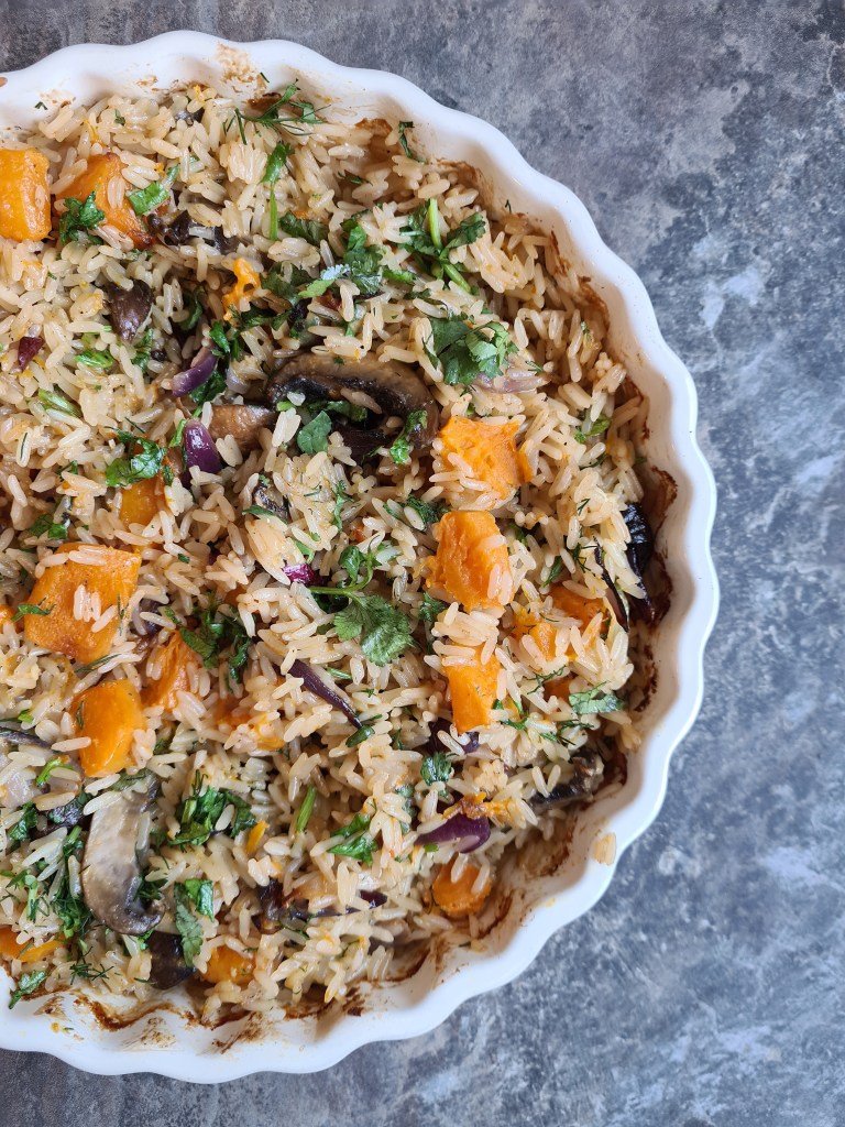BUTTERNUT AND MUSHROOM RICE TRAYBAKE